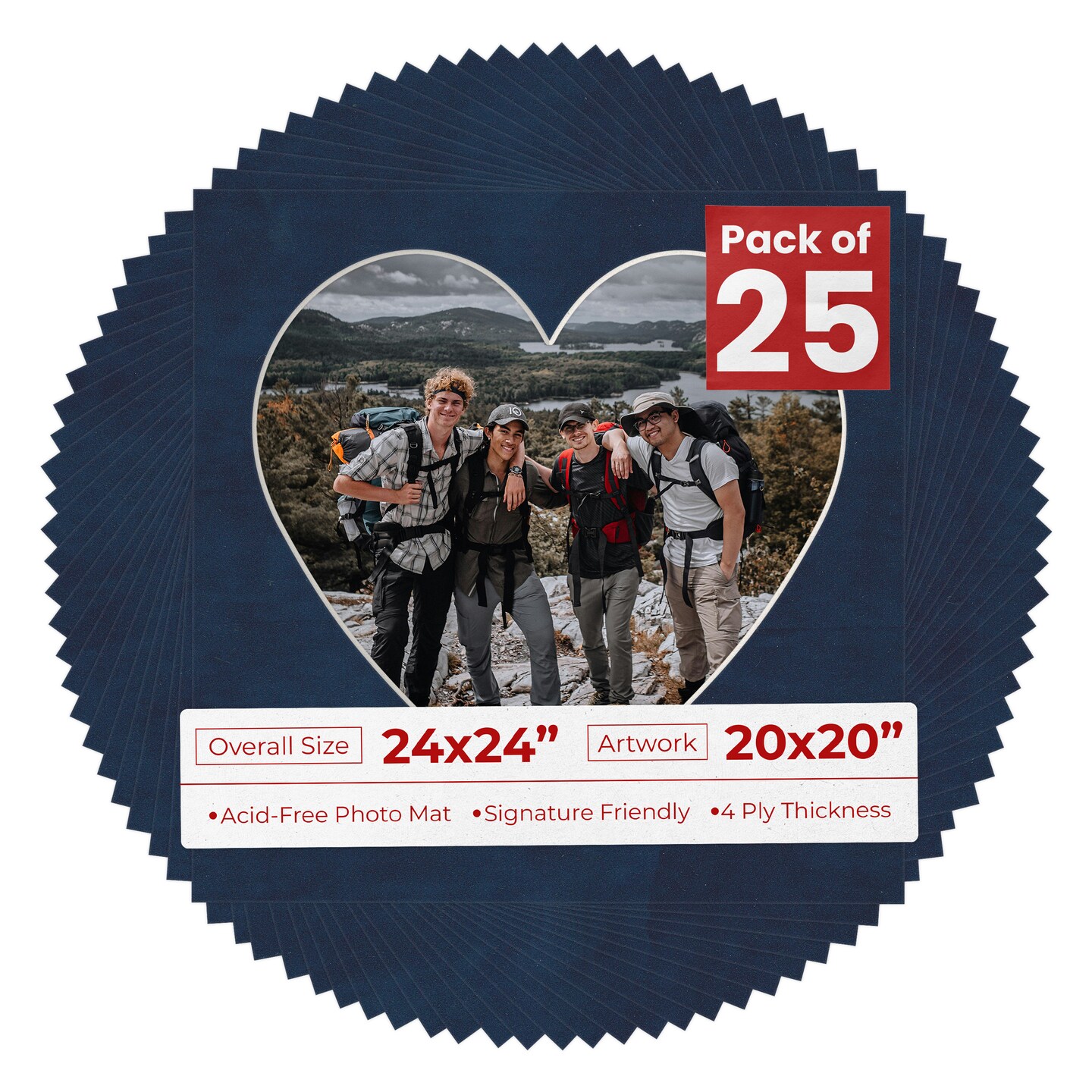 Navy Suede Mat Board for 24x24 Frames - Heart Opening for 20x20 Photos