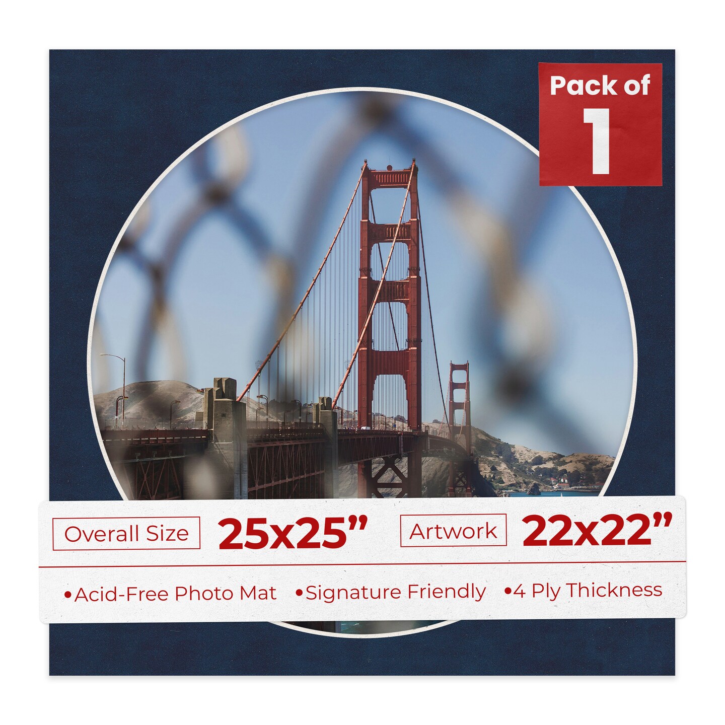 Navy Suede Mat Board for 25x25 Frames - Circle Opening for 22x22 Photos