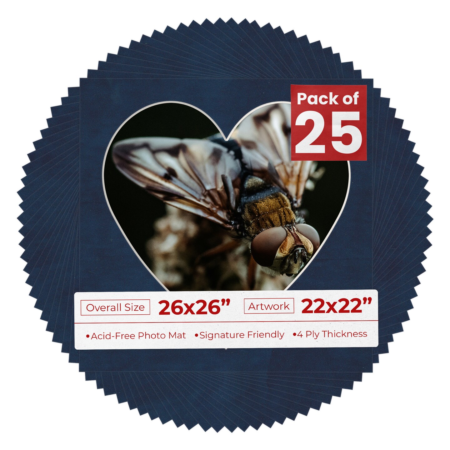Navy Suede Mat Board for 26x26 Frames - Heart Opening for 22x22 Photos