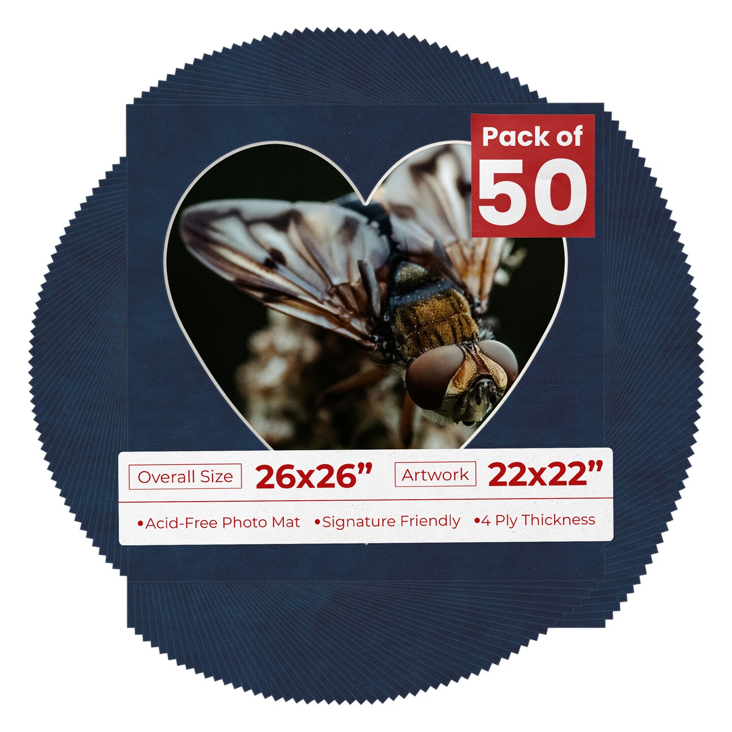 Navy Suede Mat Board for 26x26 Frames - Heart Opening for 22x22 Photos
