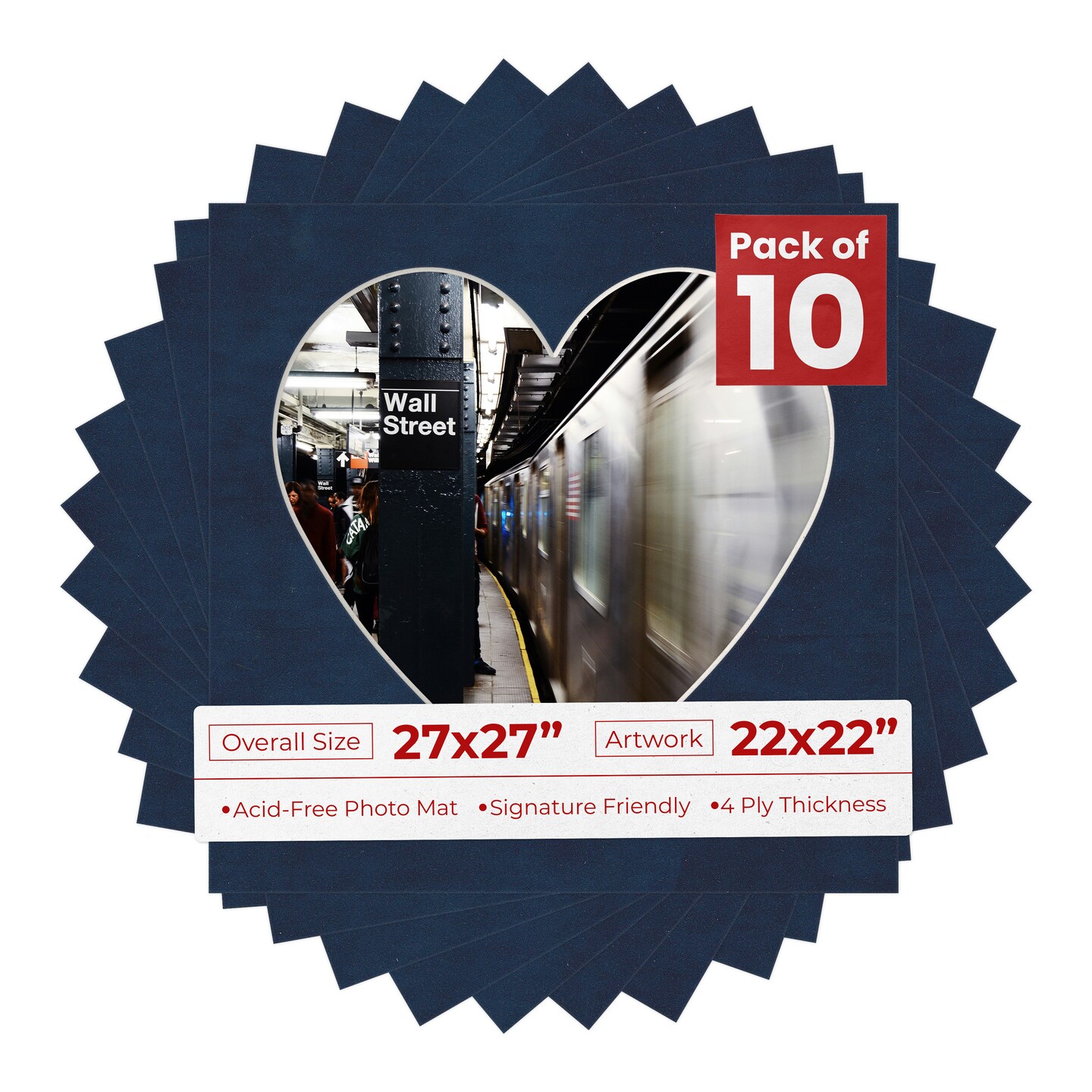 Navy Suede Mat Board for 27x27 Frames - Heart Opening for 22x22 Photos