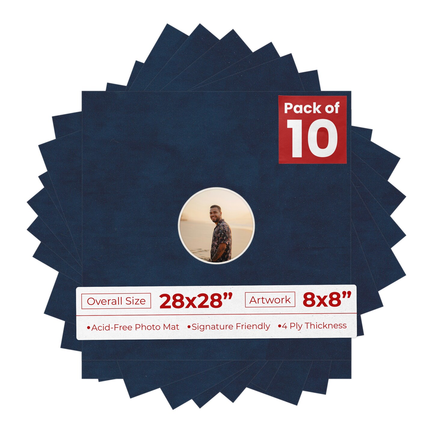 Navy Suede Mat Board for 28x28 Frames - Circle Opening for 8x8 Photos