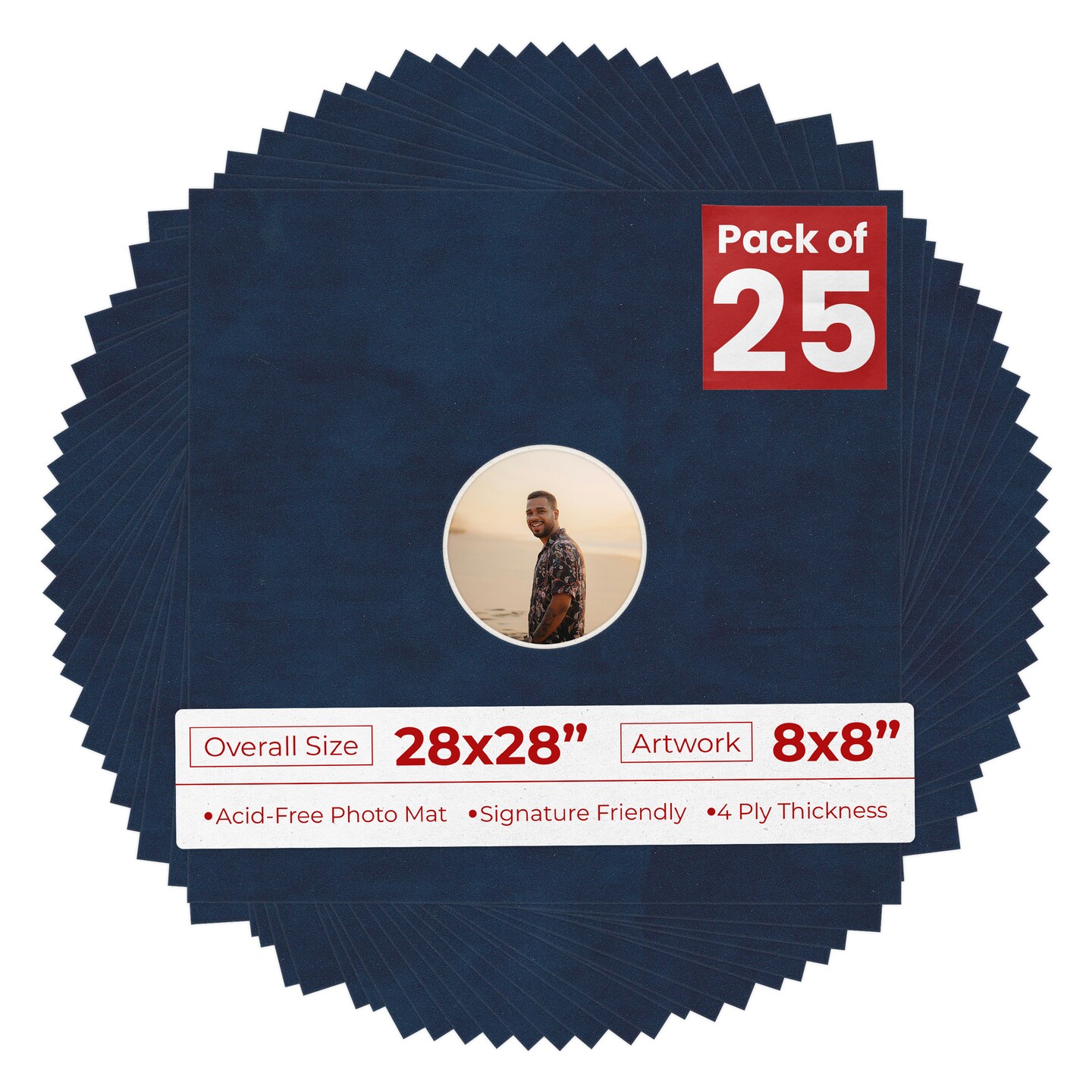 Navy Suede Mat Board for 28x28 Frames - Circle Opening for 8x8 Photos