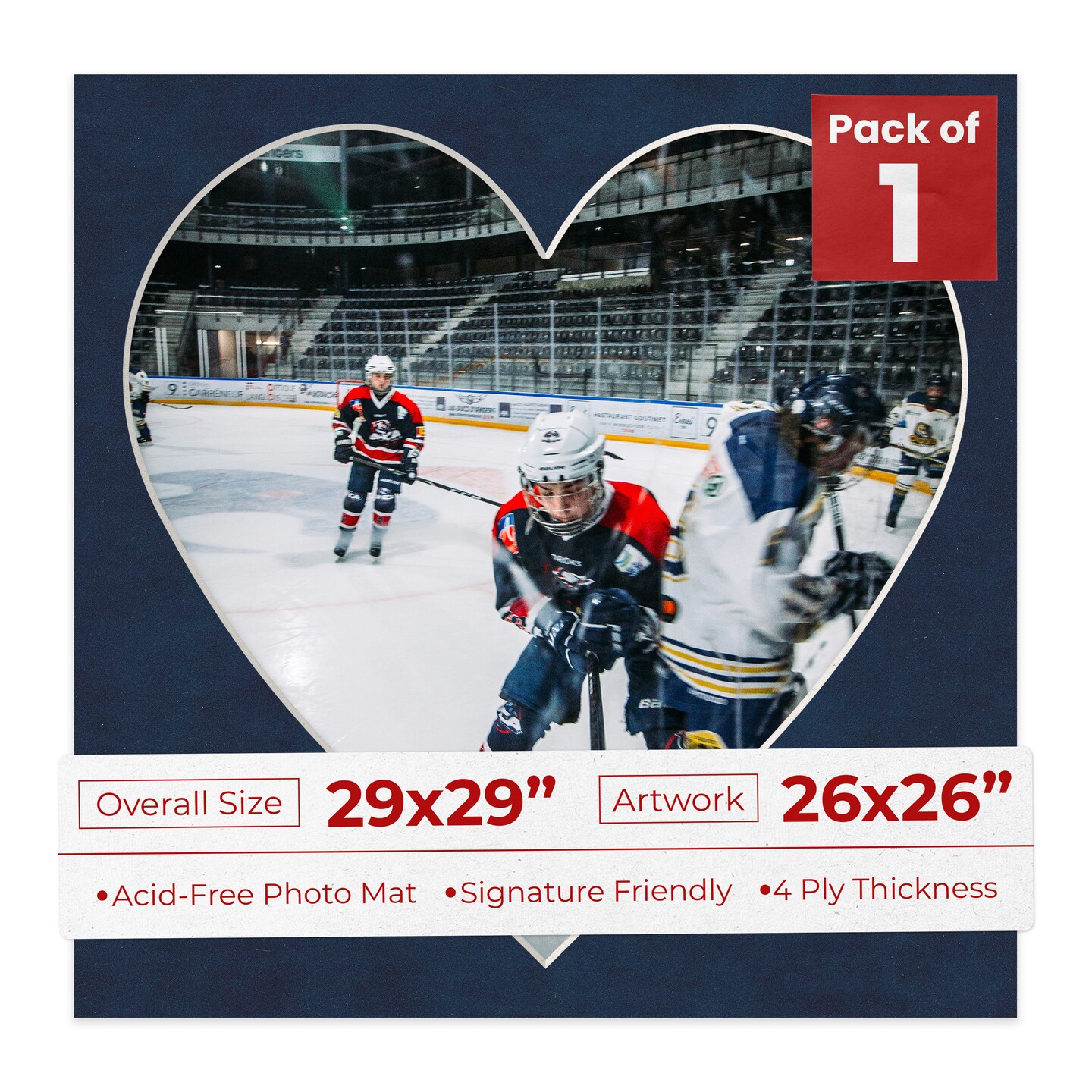 Navy Suede Mat Board for 29x29 Frames - Heart Opening for 26x26 Photos