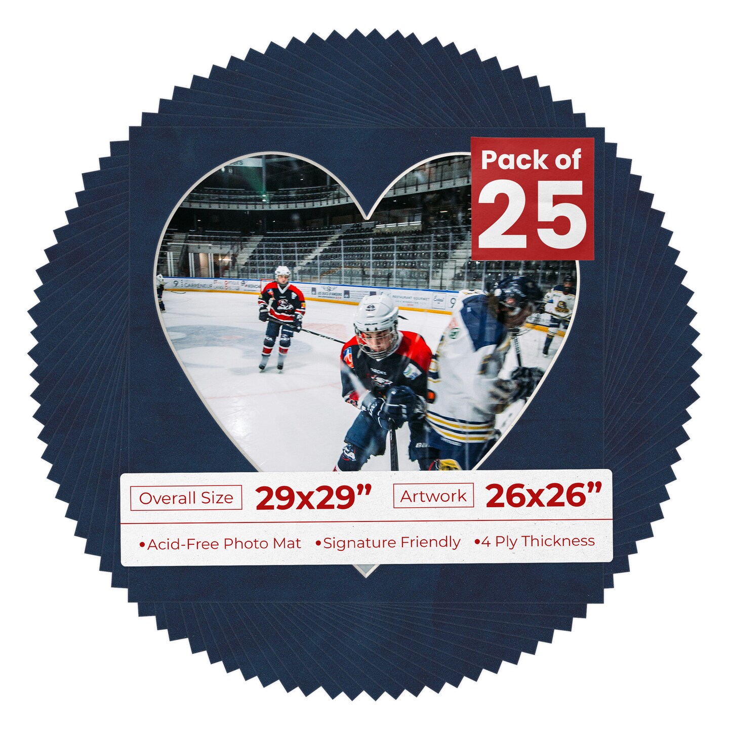 Navy Suede Mat Board for 29x29 Frames - Heart Opening for 26x26 Photos
