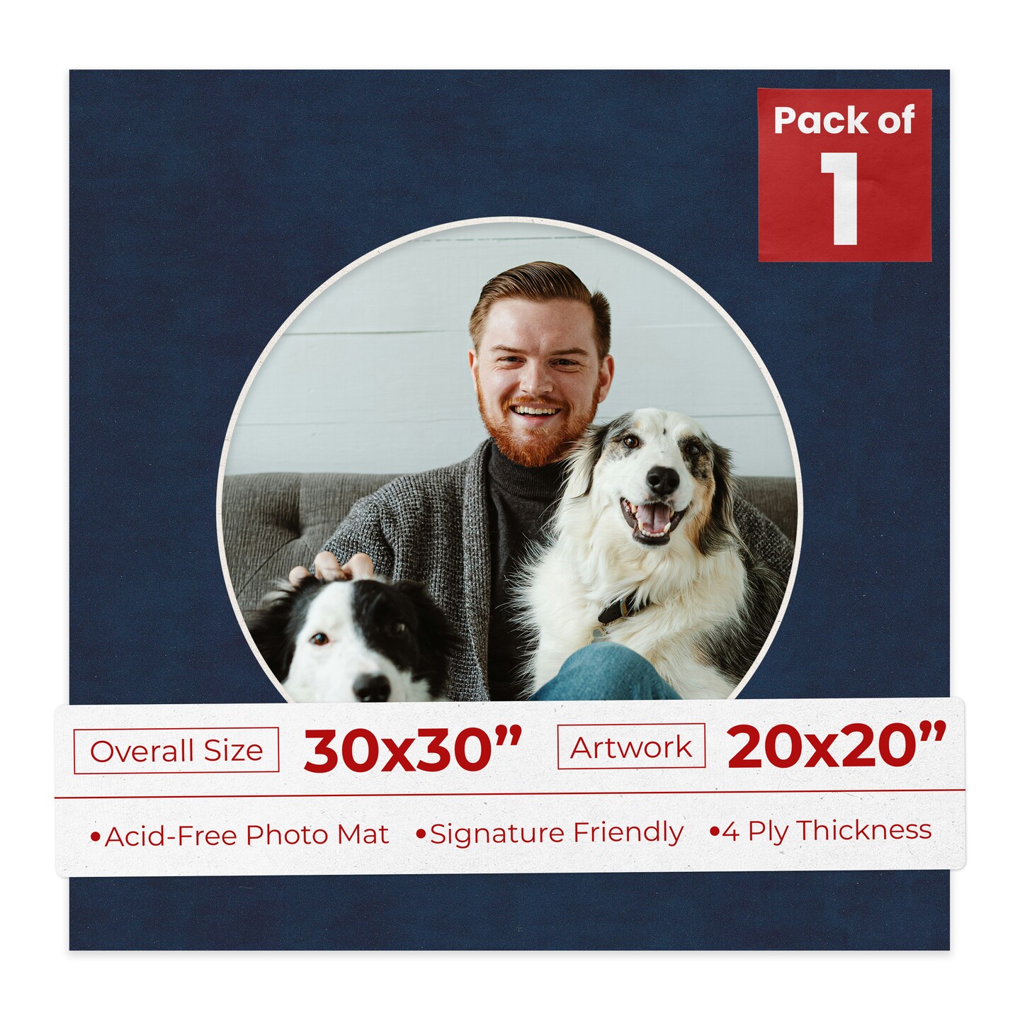 Navy Suede Mat Board for 30x30 Frames - Circle Opening for 20x20 Photos