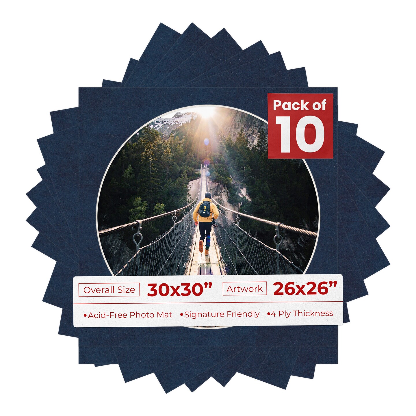 Navy Suede Mat Board for 30x30 Frames - Circle Opening for 26x26 Photos