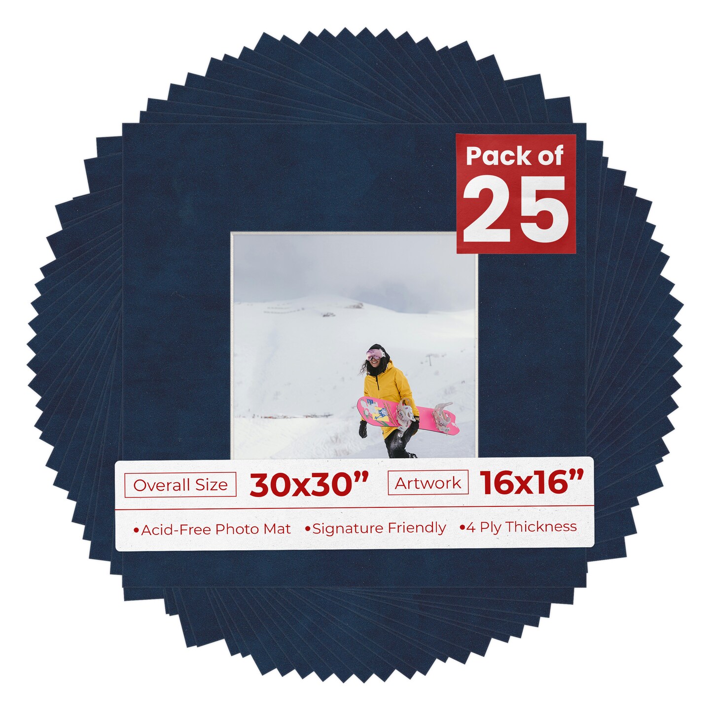 Navy Suede Mat Board for 30x30 Frames - Fits 16x16 Photos