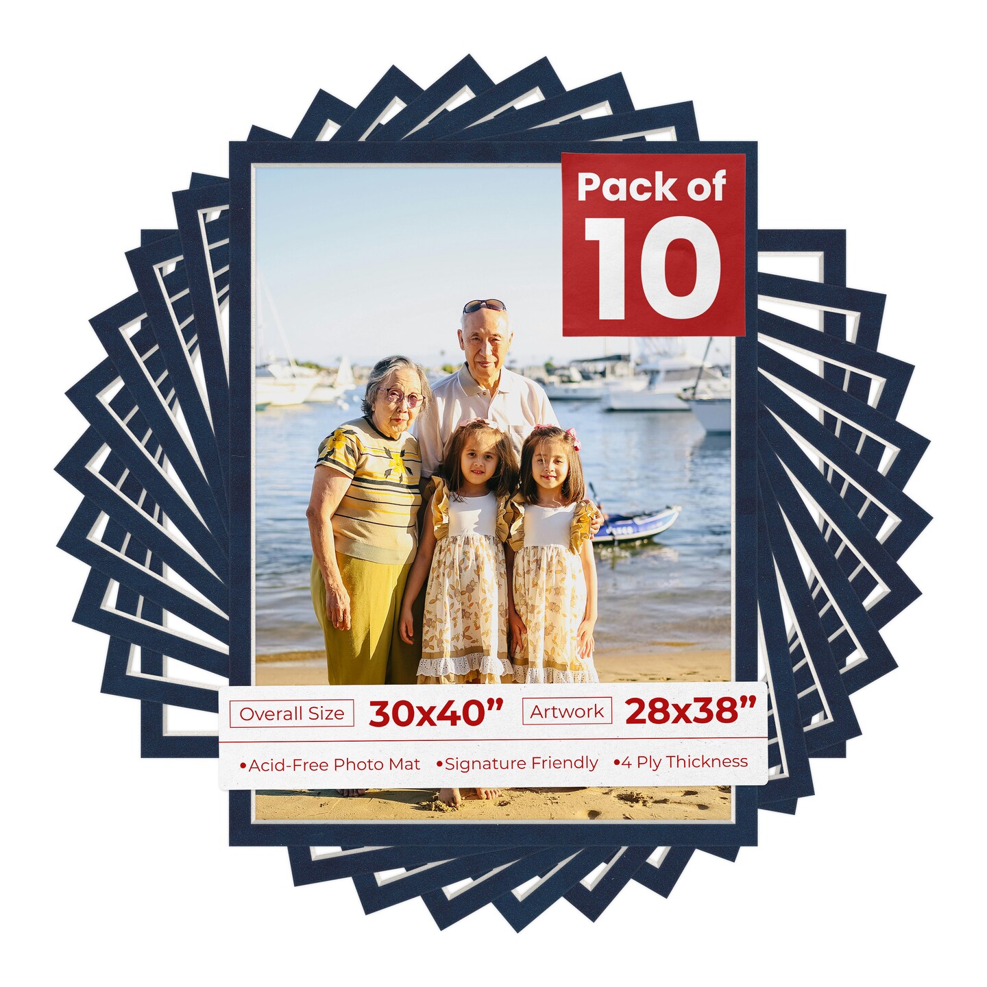 Navy Suede Mat Board for 30x40 Frames - Fits 28x38 Photos
