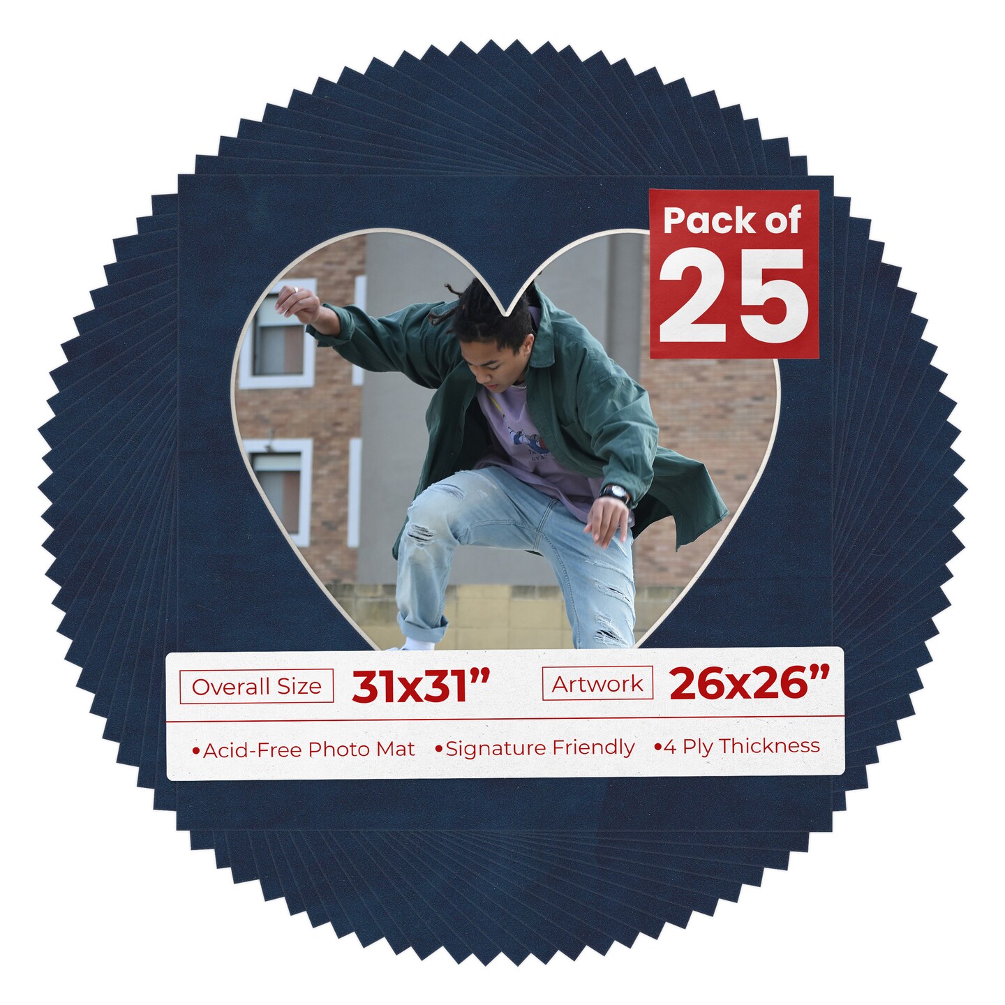 Navy Suede Mat Board for 31x31 Frames - Heart Opening for 26x26 Photos
