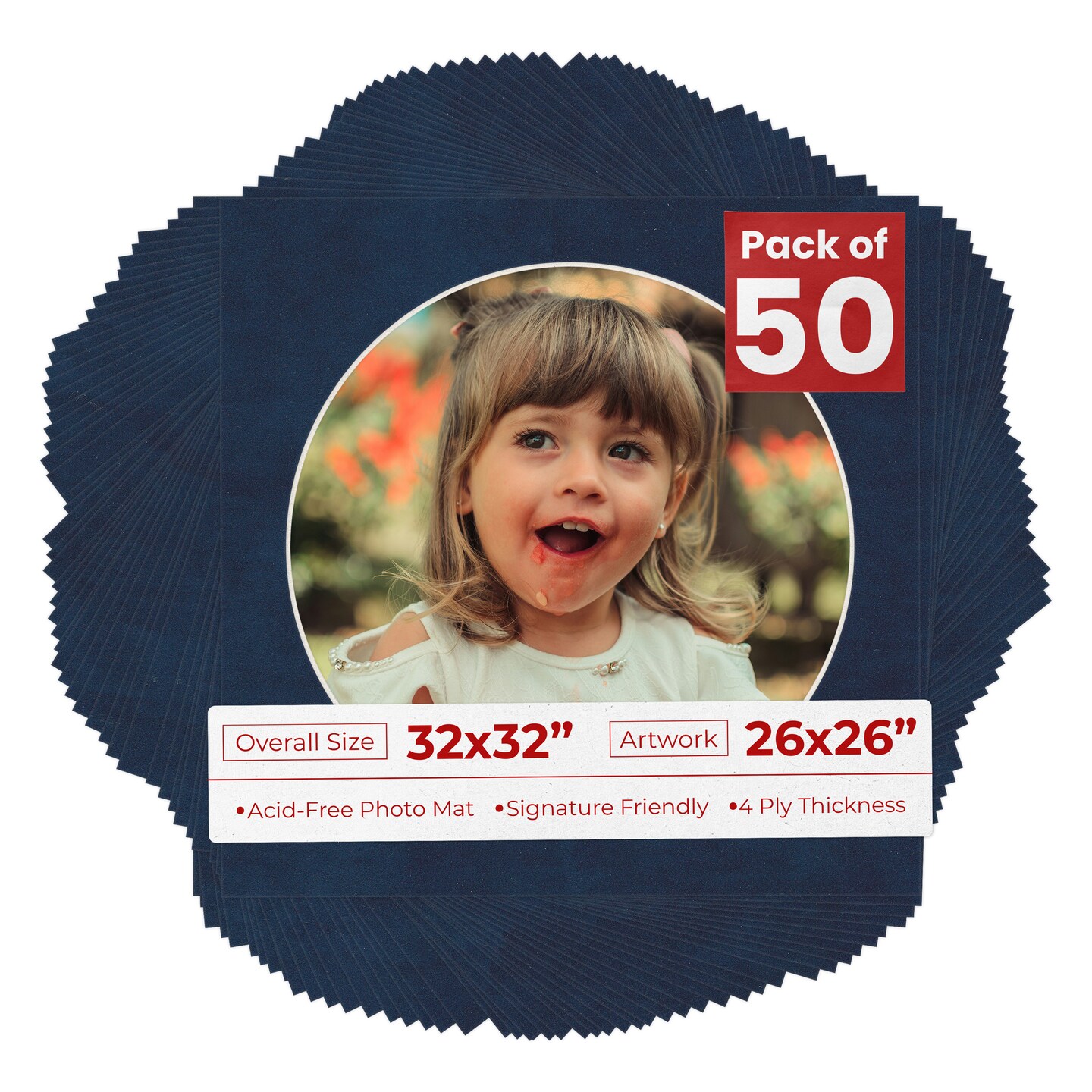Navy Suede Mat Board for 32x32 Frames - Circle Opening for 26x26 Photos