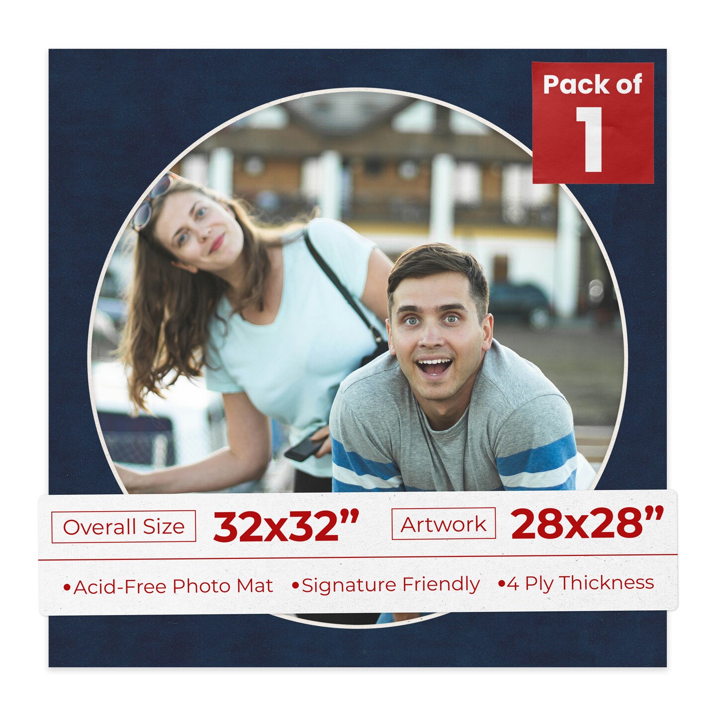 Navy Suede Mat Board for 32x32 Frames - Circle Opening for 28x28 Photos