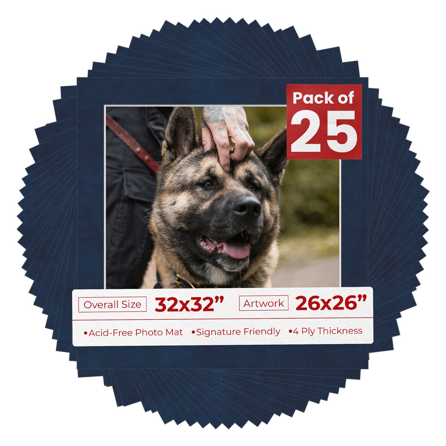 Navy Suede Mat Board for 32x32 Frames - Fits 26x26 Photos