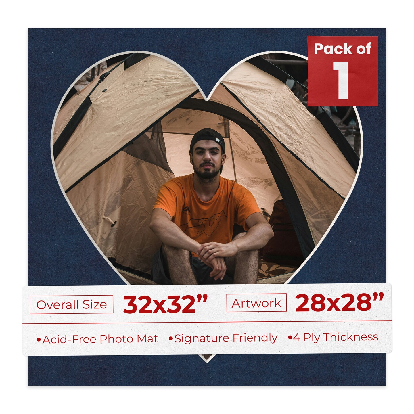Navy Suede Mat Board for 32x32 Frames - Heart Opening for 28x28 Photos