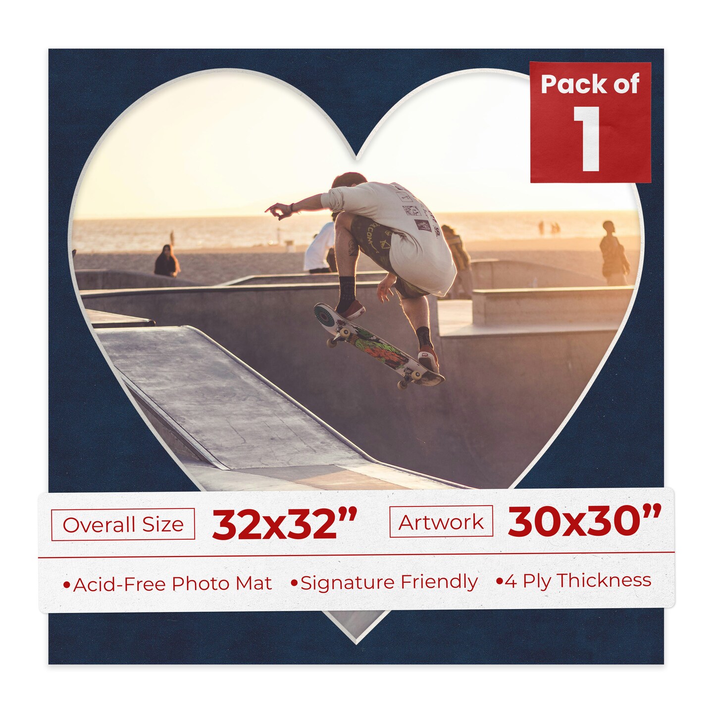 Navy Suede Mat Board for 32x32 Frames - Heart Opening for 30x30 Photos
