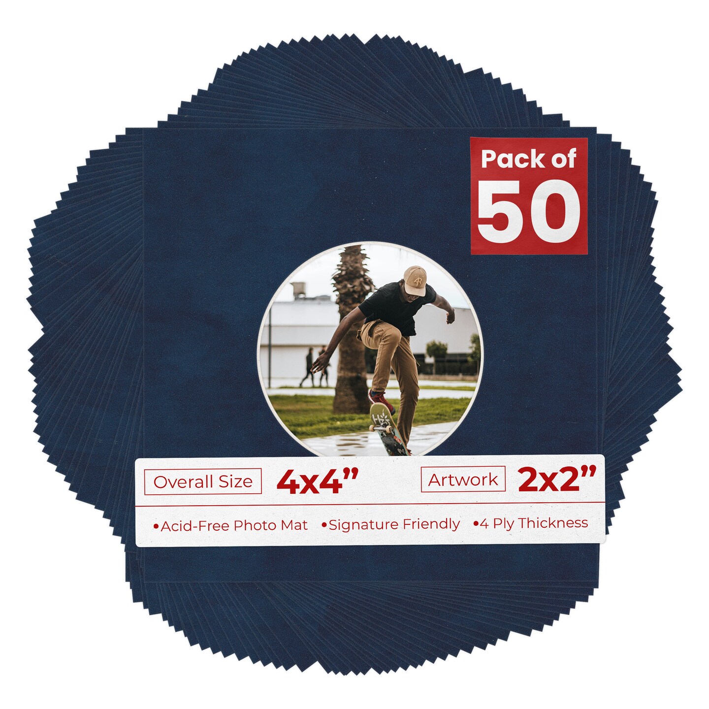 Navy Suede Mat Board for 4x4 Inch Frames - Circle Opening for 2x2 Photos