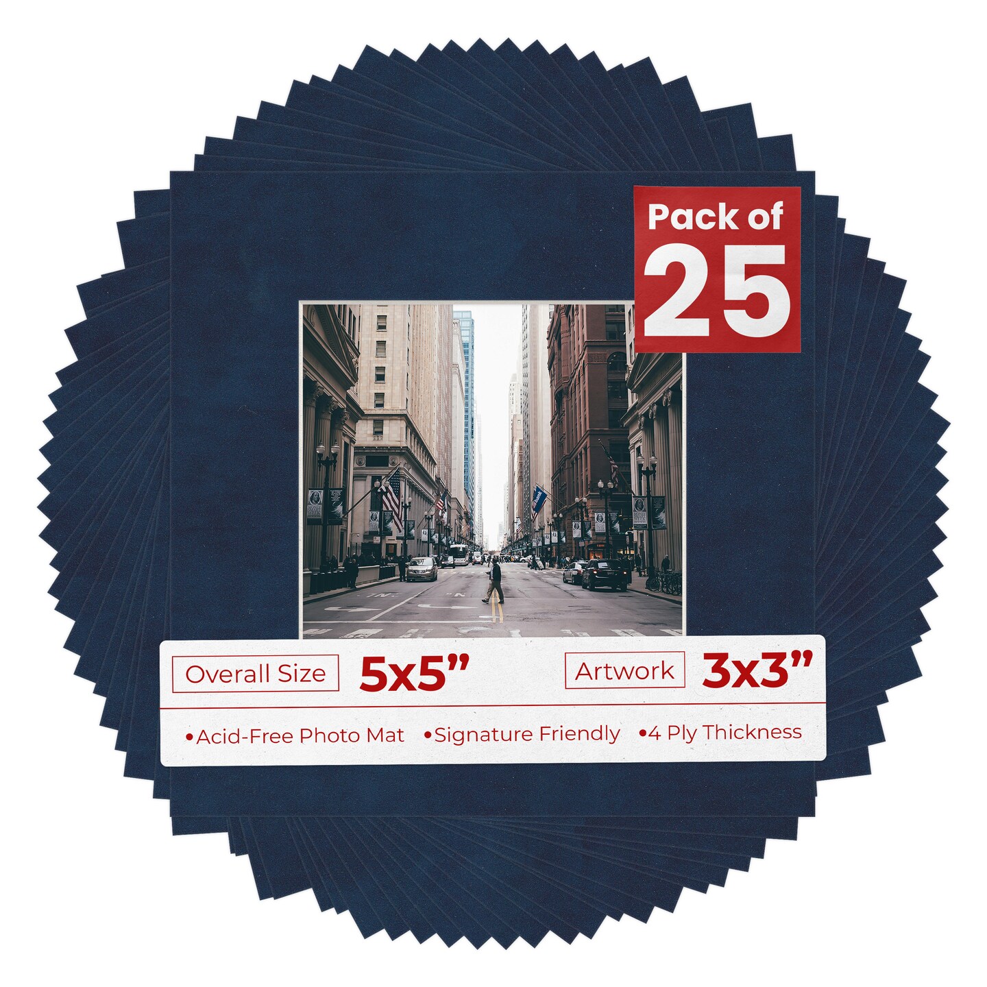 Navy Suede Mat Board for 5x5 Inch Frames - Fits 3x3 Photos
