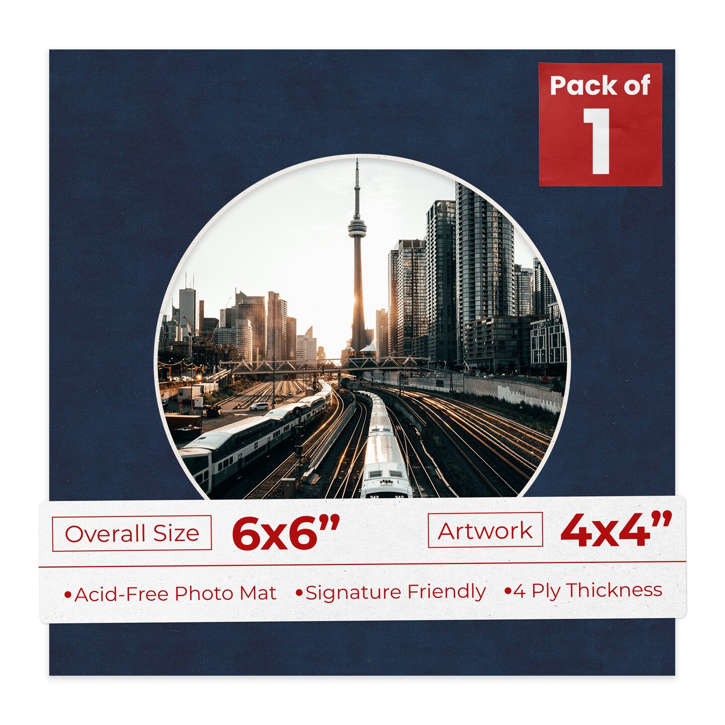 Navy Suede Mat Board for 6x6 Frames - Circle Opening for 4x4 Photos