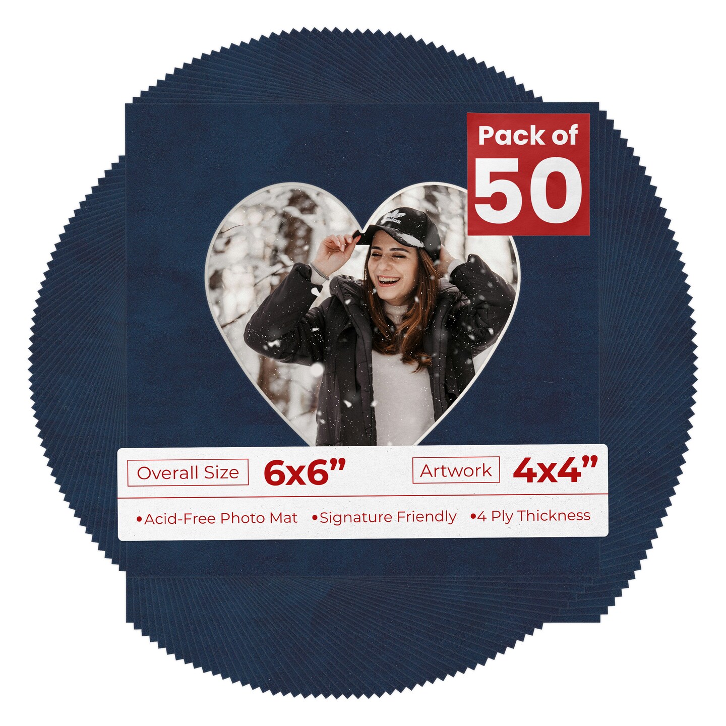 Navy Suede Mat Board for 6x6 Frames - Heart Opening for 4x4 Photos