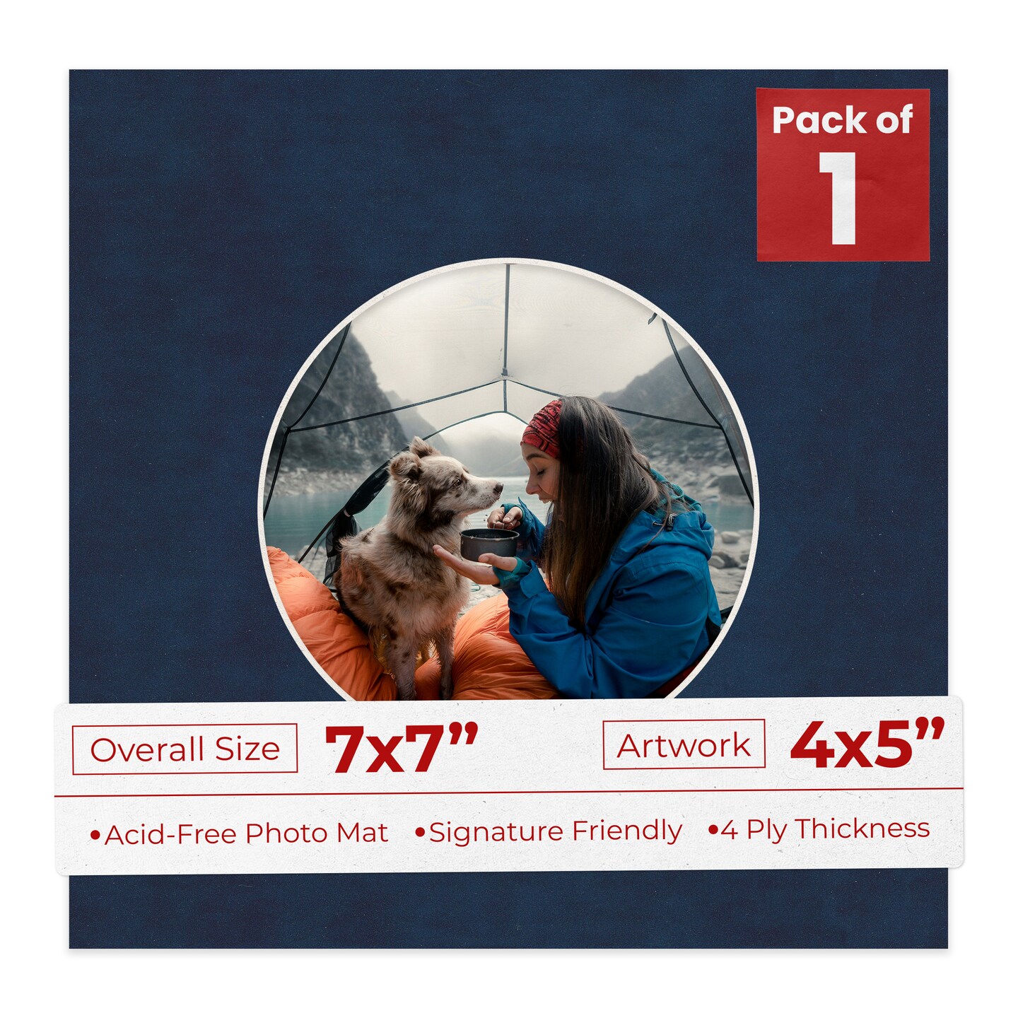 Navy Suede Mat Board for 7x7 Frames - Circle Opening for 4x5 Photos