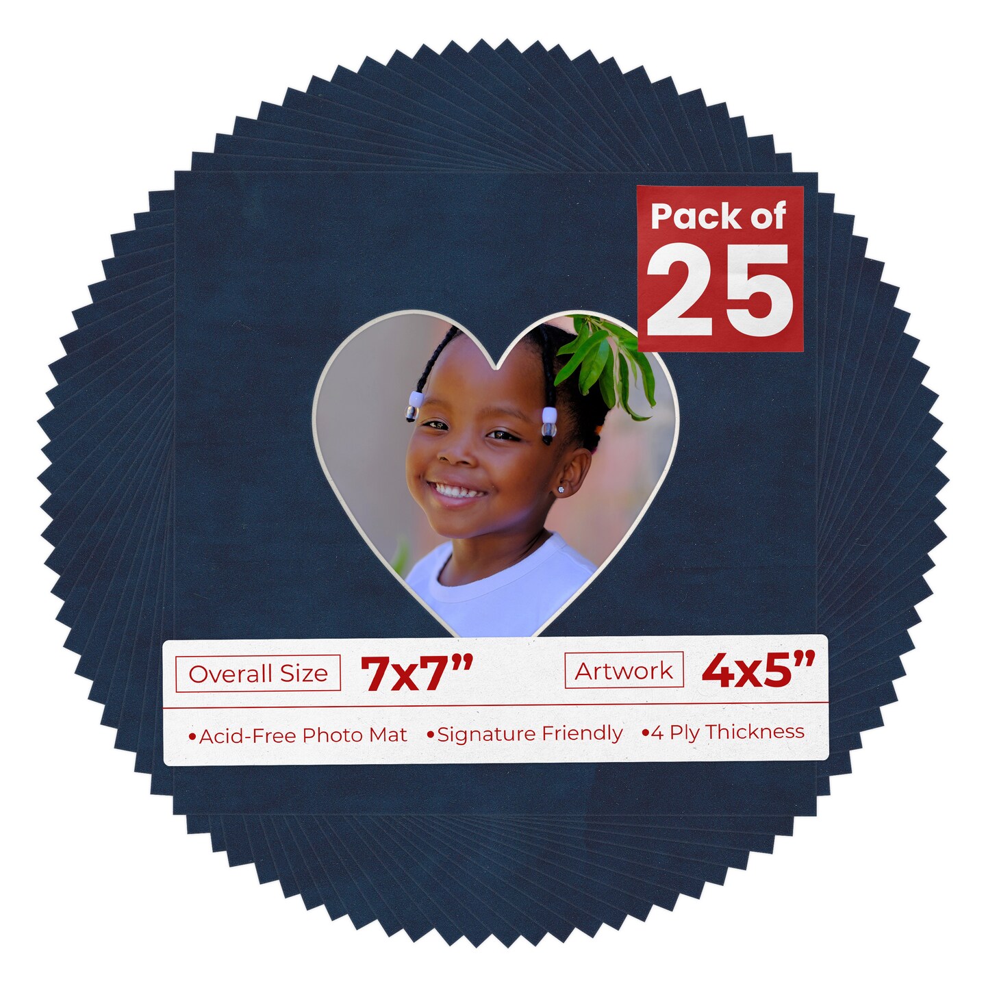 Navy Suede Mat Board for 7x7 Frames - Heart Opening for 4x5 Photos