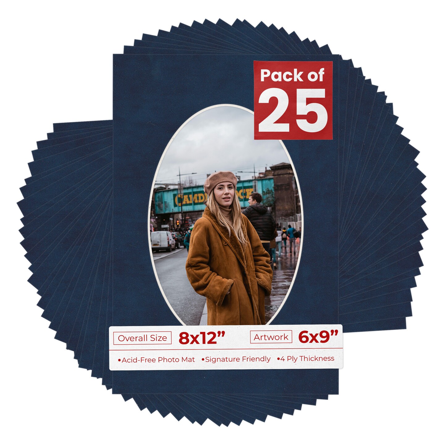 Navy Suede Mat Board for 8x12 Frames - Oval Opening for 6x9 Photos