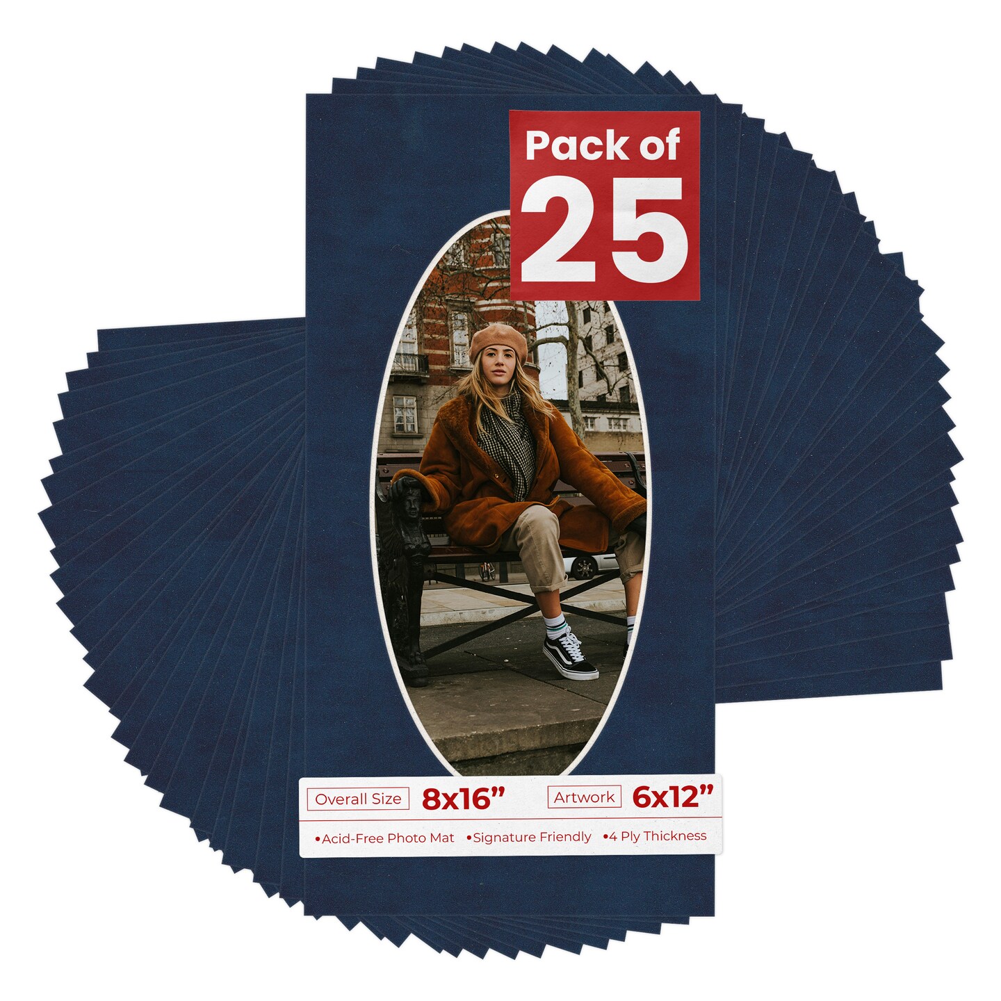 Navy Suede Mat Board for 8x16 Frames - Oval Opening for 6x12 Photos