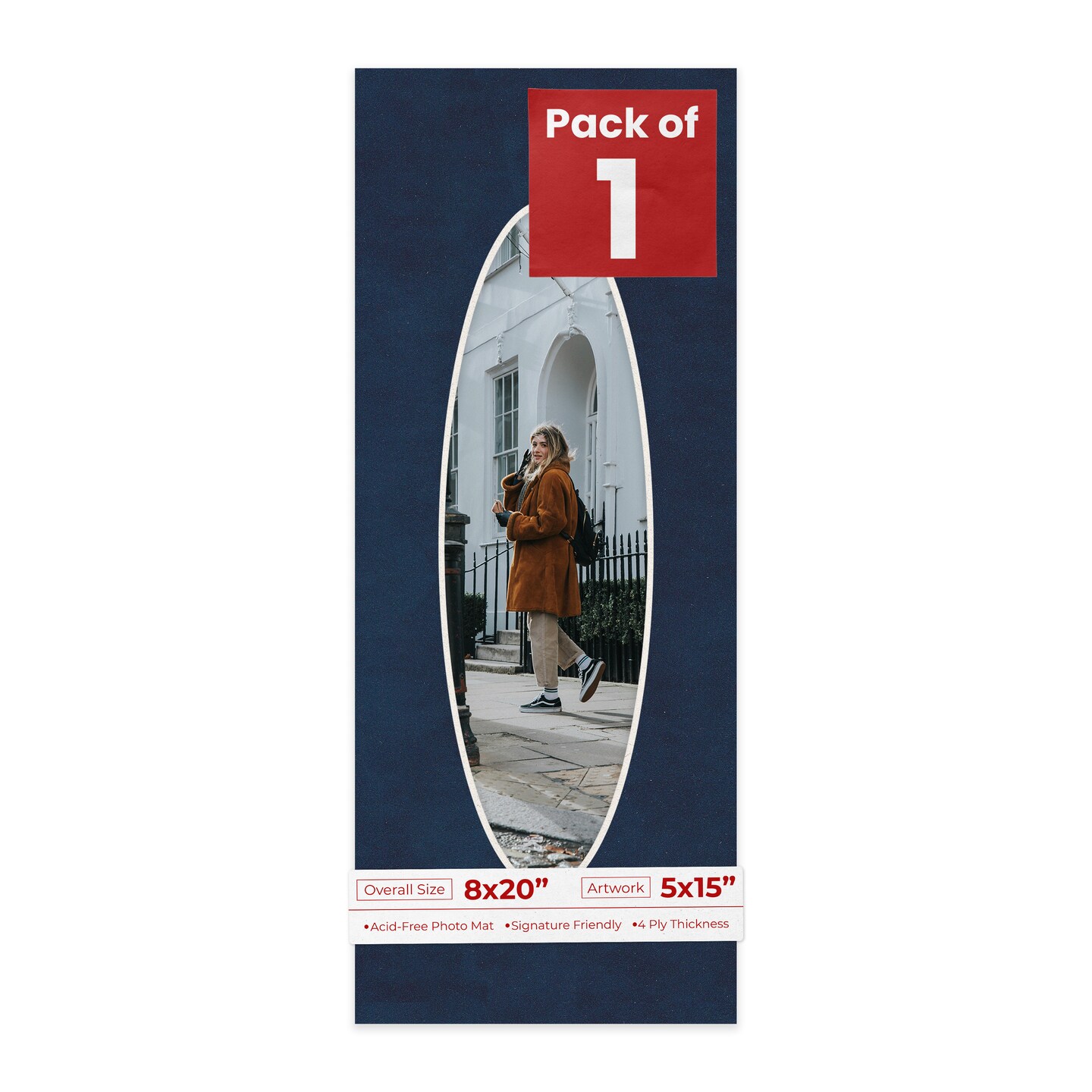 Navy Suede Mat Board for 8x20 Frames - Oval Opening for 5x15 Photos