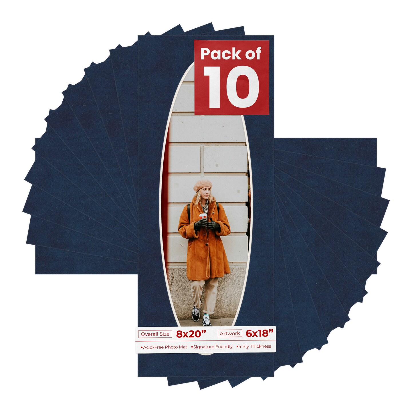 Navy Suede Mat Board for 8x20 Frames - Oval Opening for 6x18 Photos