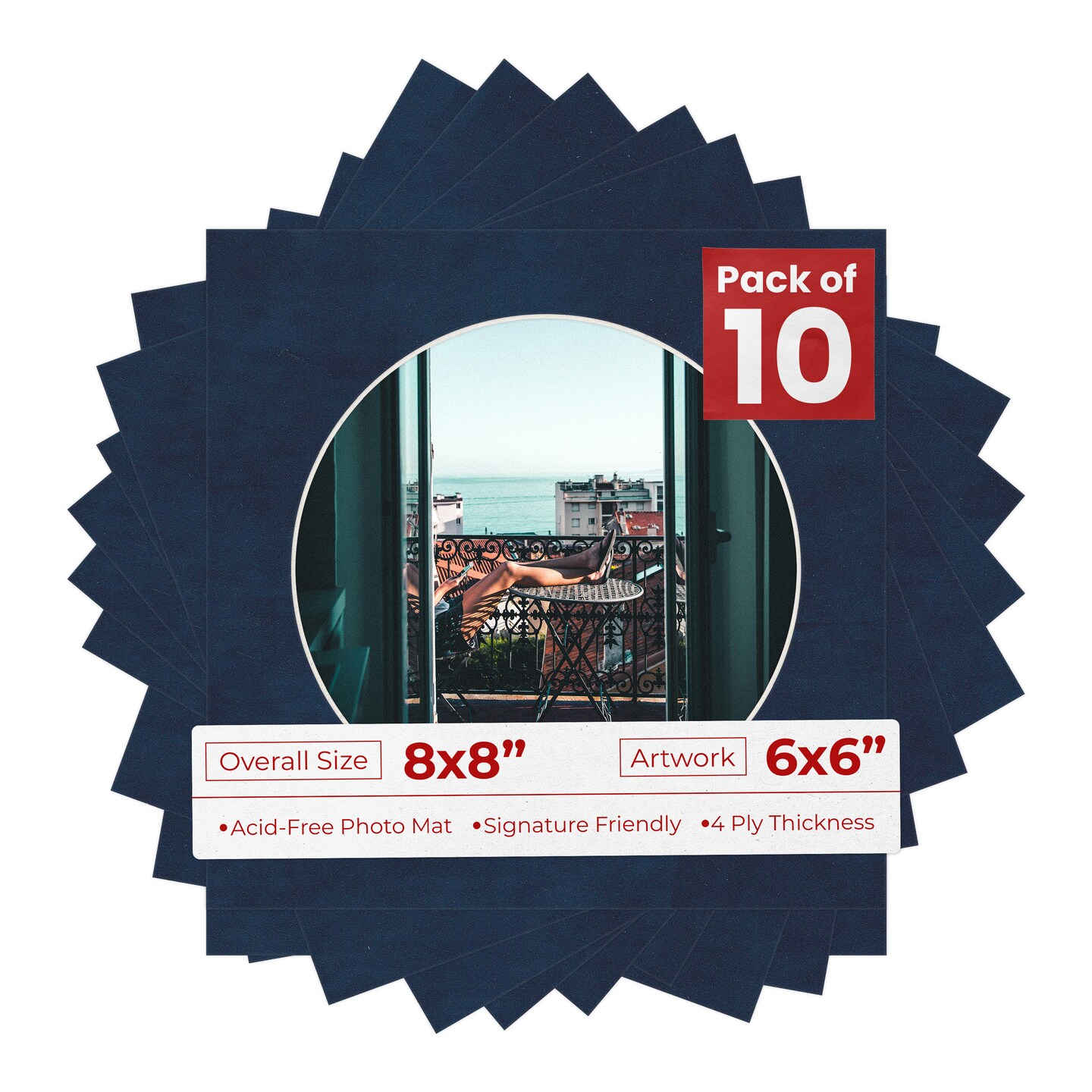 Navy Suede Mat Board for 8x8 Frames - Circle Opening for 6x6 Photos