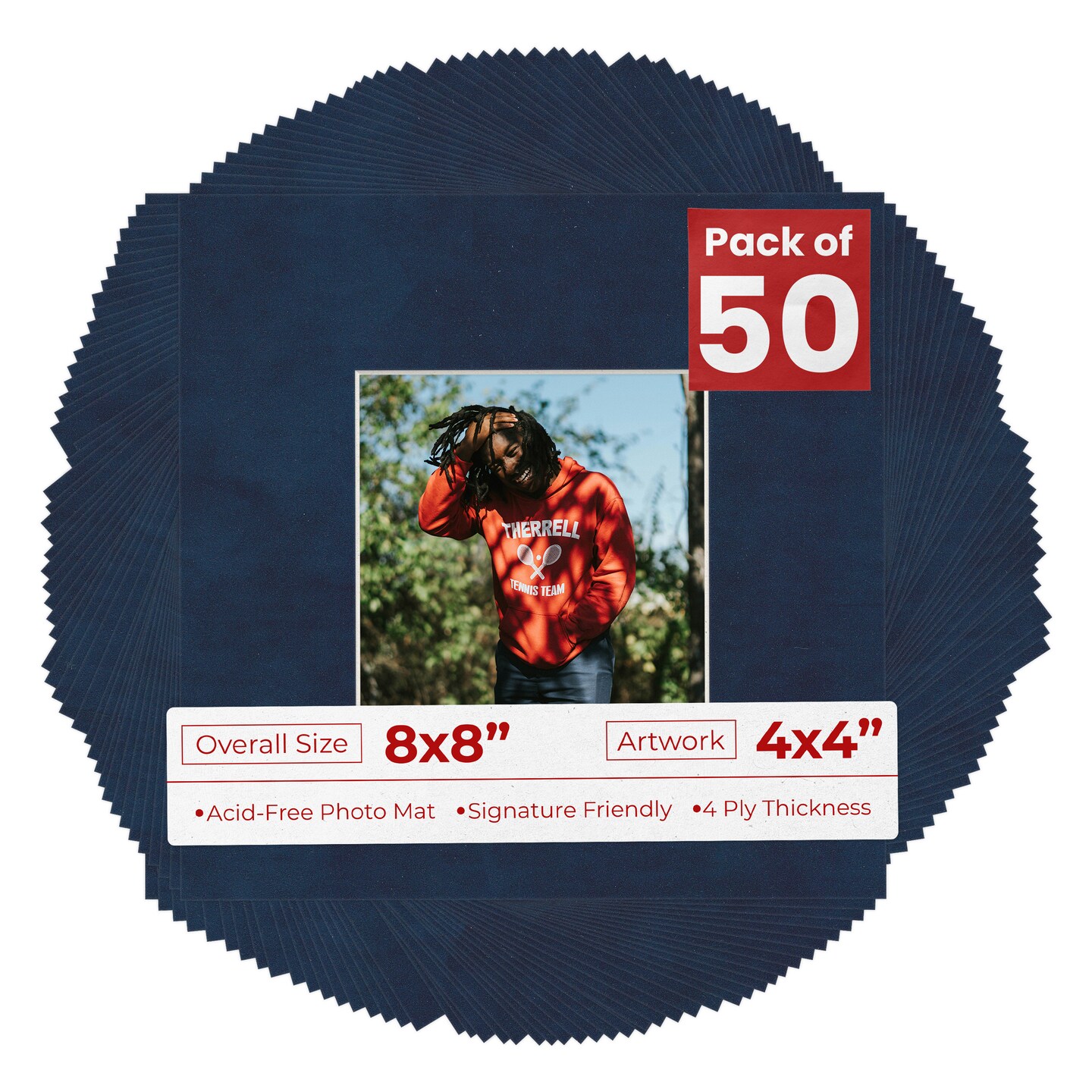 Navy Suede Mat Board for 8x8 Frames - Fits 4x4 Photos
