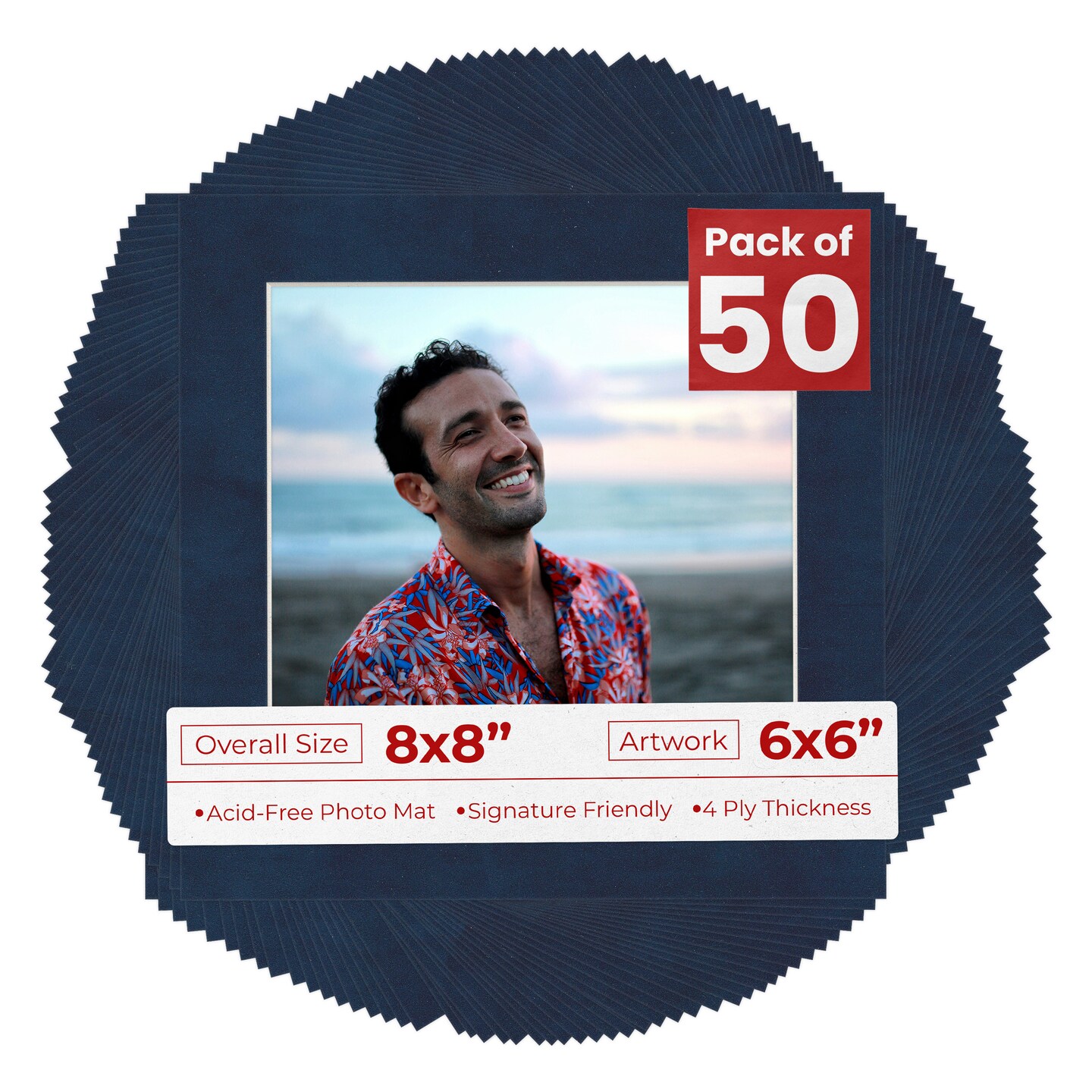 Navy Suede Mat Board for 8x8 Frames - Fits 6x6 Photos