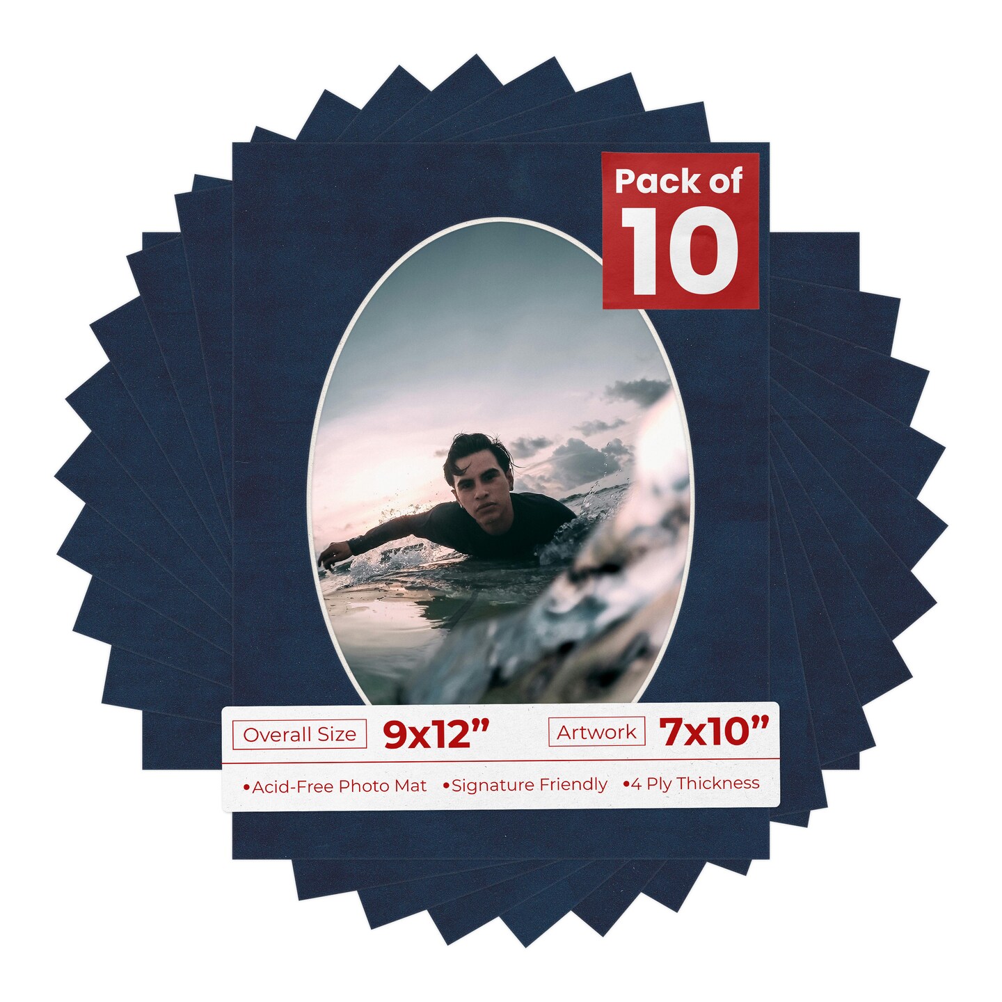 Navy Suede Mat Board for 9x12 Frames - Oval Opening for 7x10 Photos