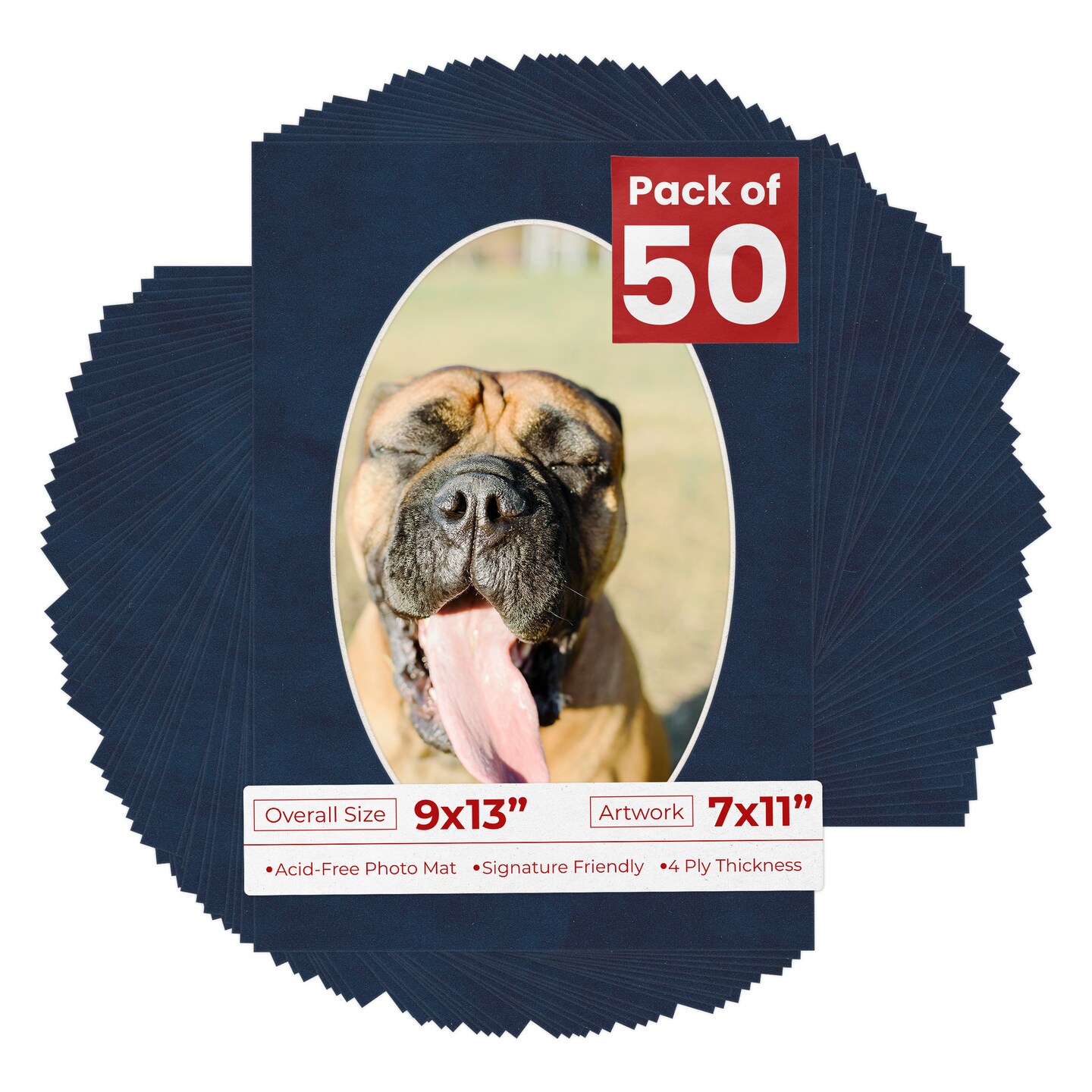 Navy Suede Mat Board for 9x13 Frames - Oval Opening for 7x11 Photos