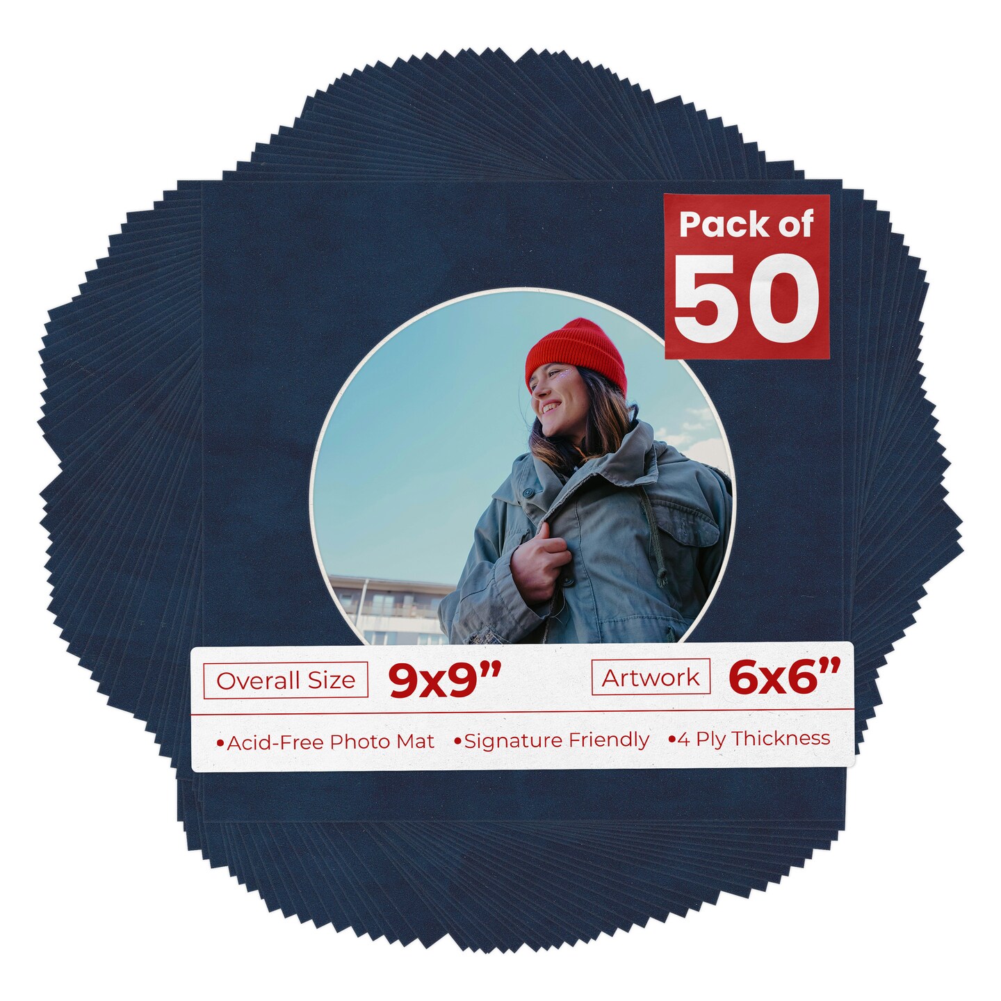 Navy Suede Mat Board for 9x9 Frames - Circle Opening for 6x6 Photos