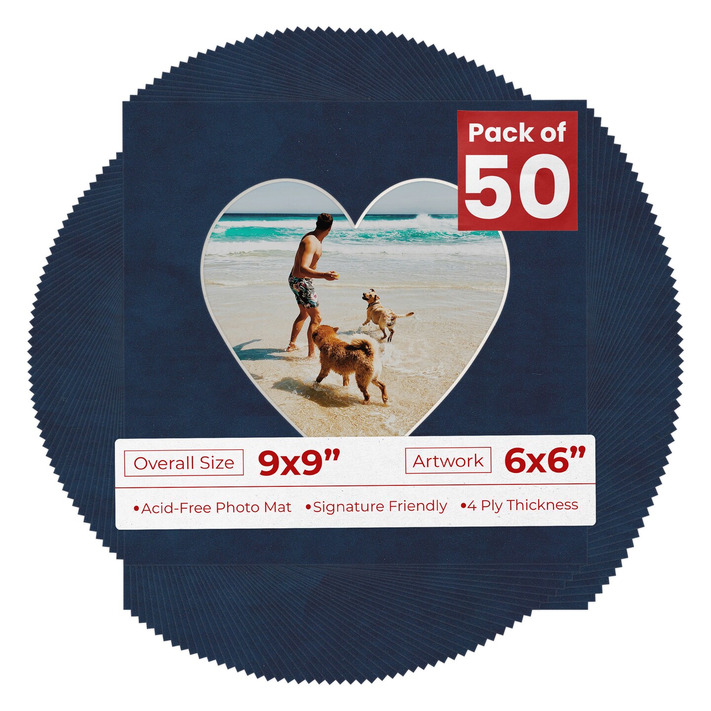 Navy Suede Mat Board for 9x9 Frames - Heart Opening for 6x6 Photos