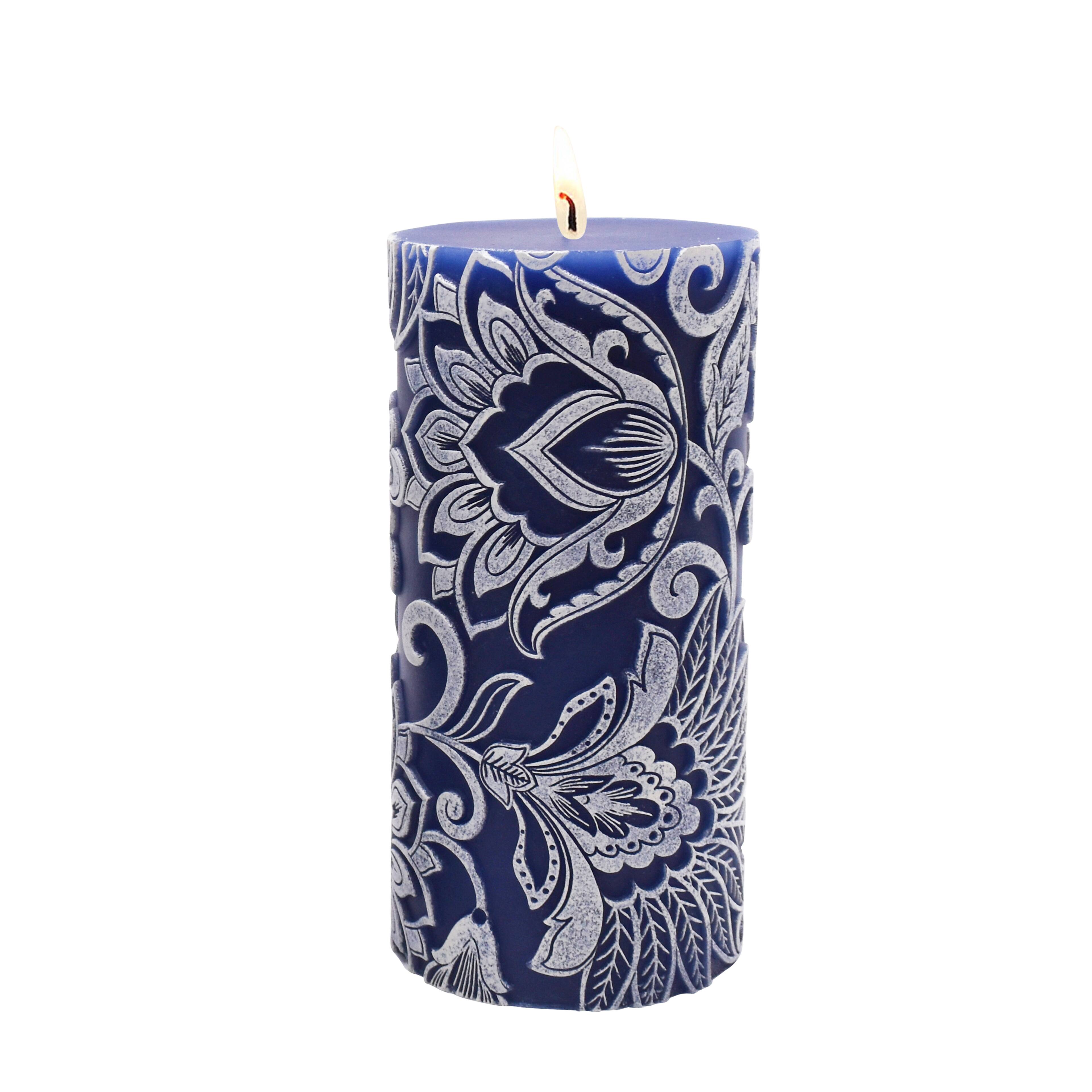 Navy & White Floral Embossed Pillar Candle by Ashland®
