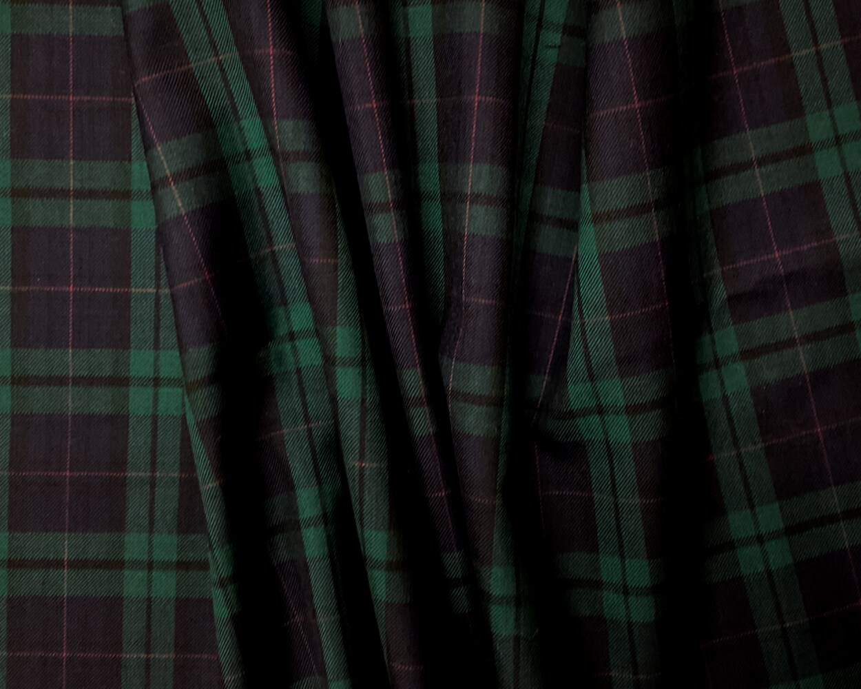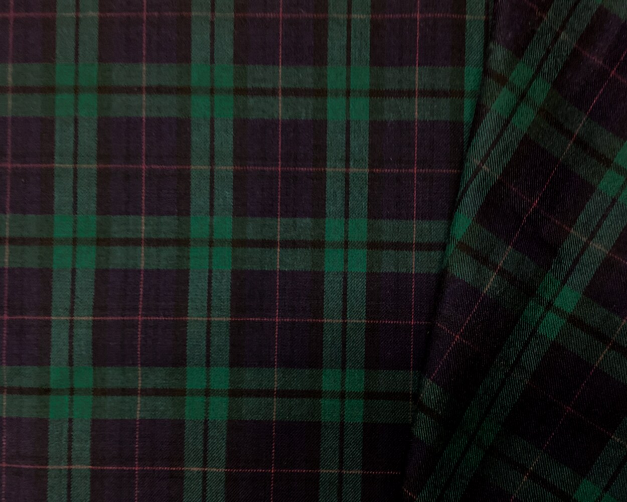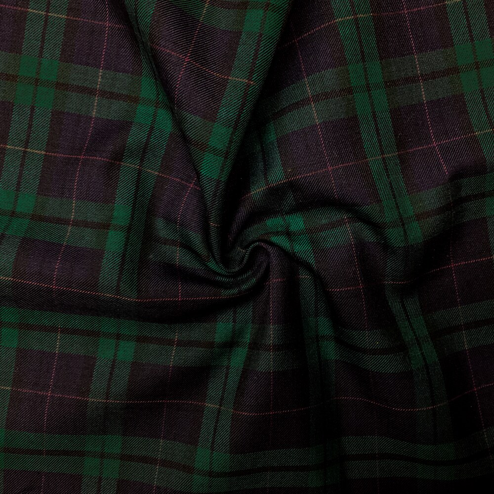 Navy-Green-Multi Poly-Wool Japanese Plaid Twill Suiting Woven Fabric By the Yard