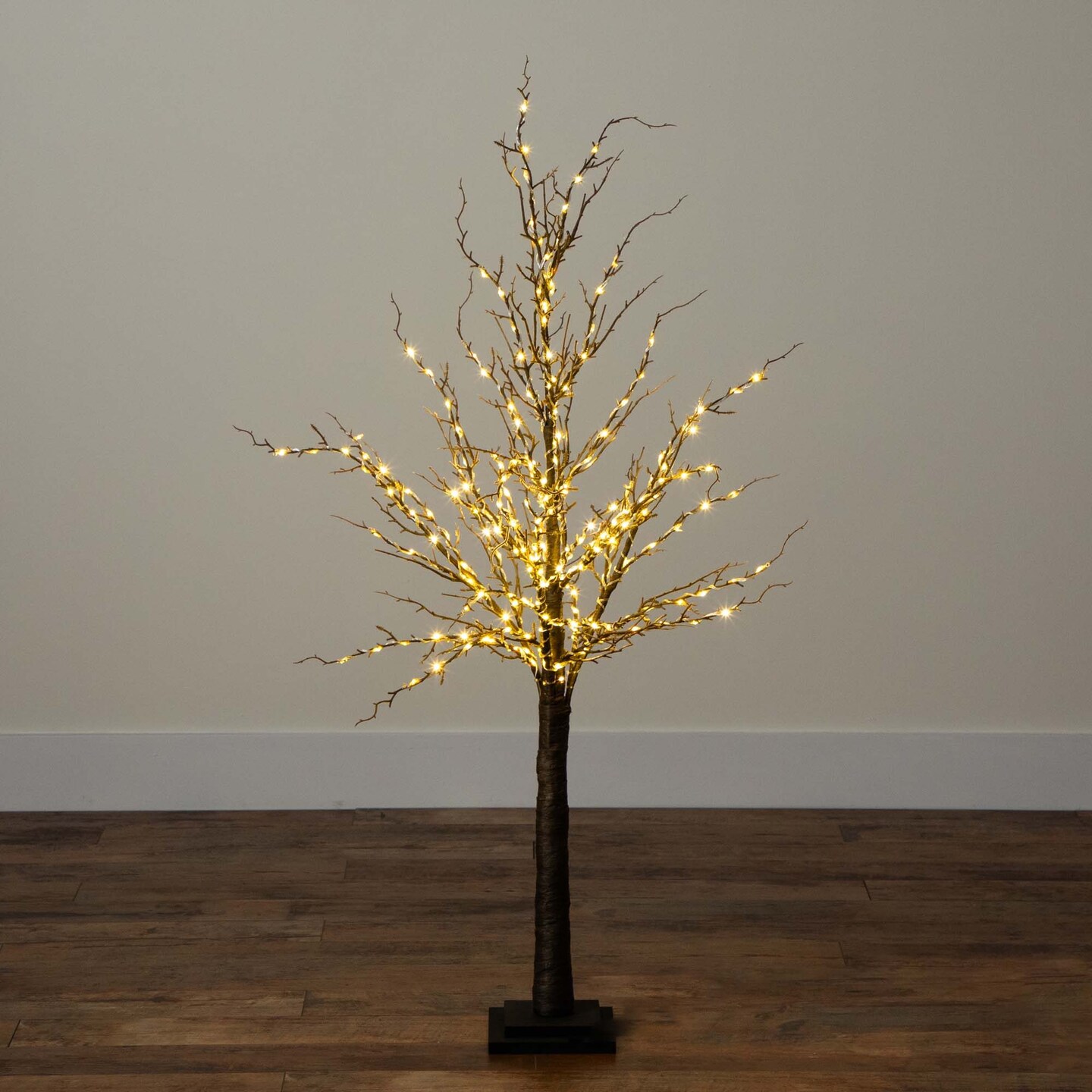 Nearly Natural Pre-Lit Brown Twig Artificial Christmas Tree - 4' - Warm White LED Lights
