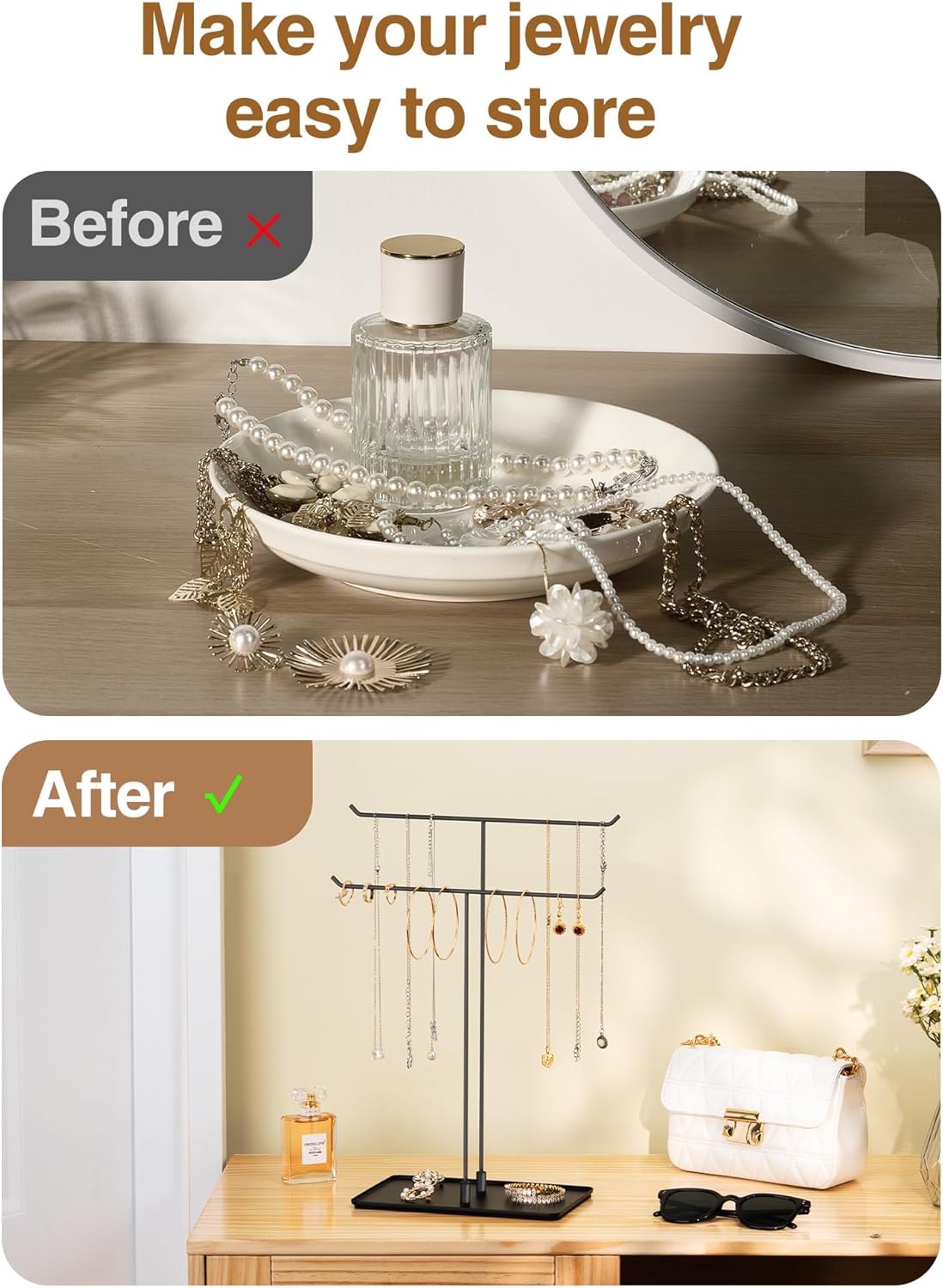 Necklace Holder Jewelry Stand Organizer for Necklaces and Bracelets, Metal Display Stand, Gift for Women, Ideal for Home, Bedroom, or Vanity, Black
