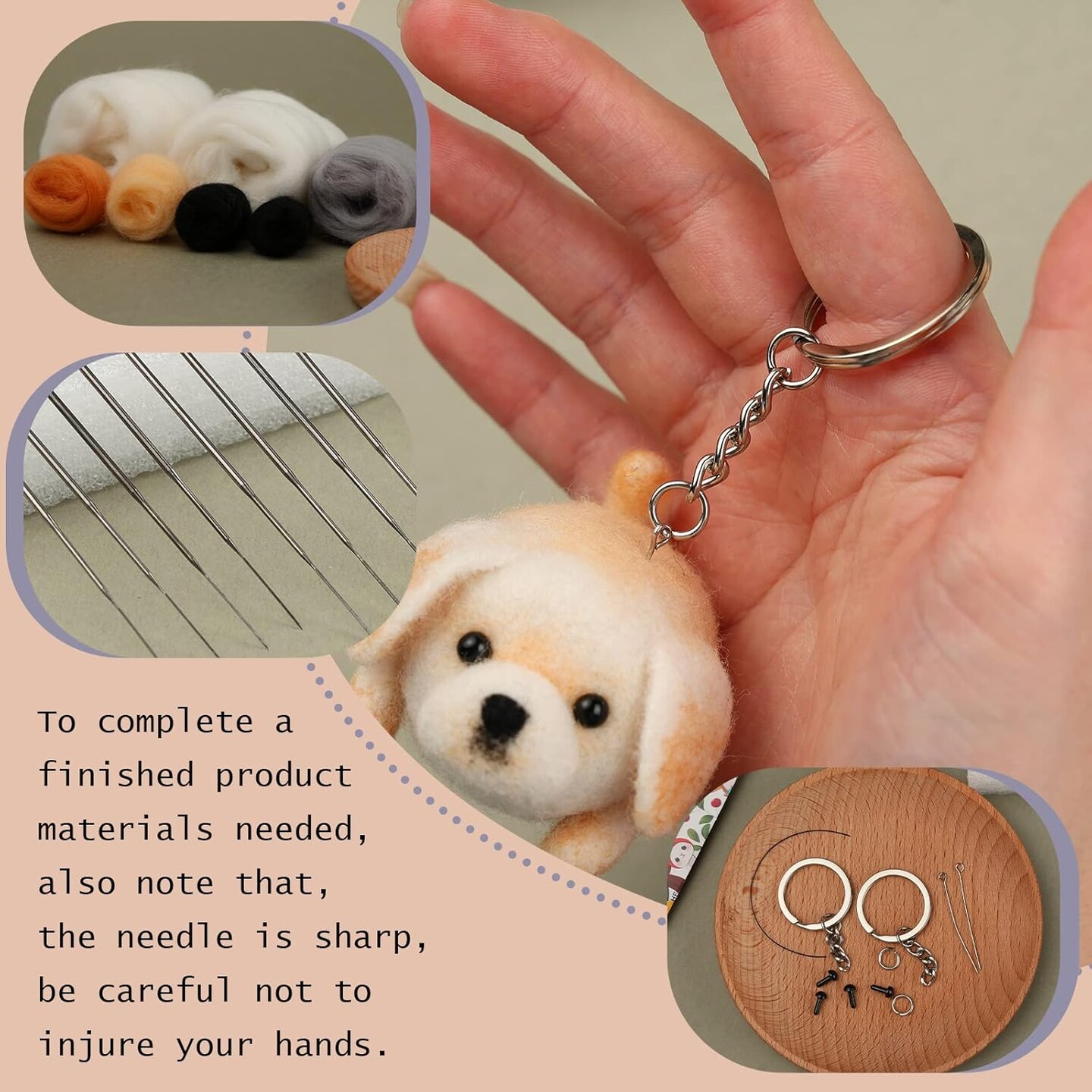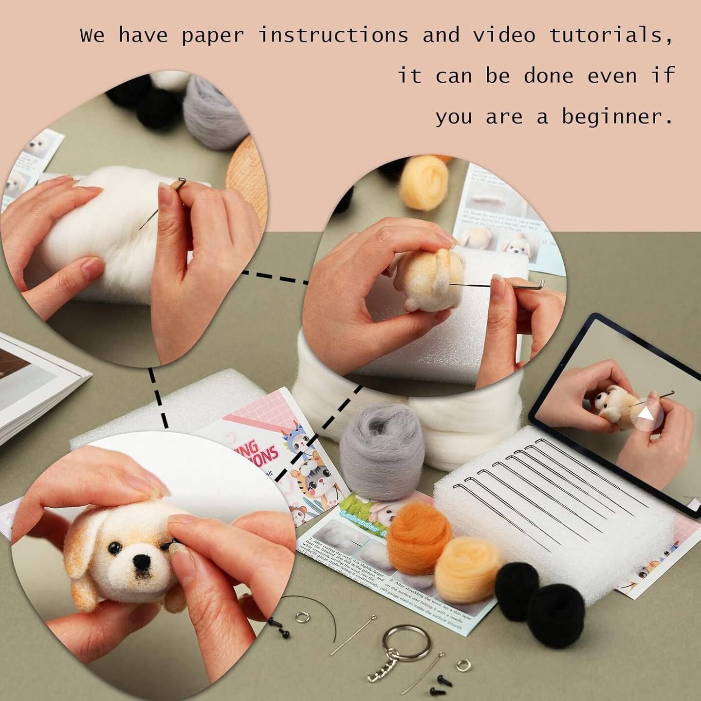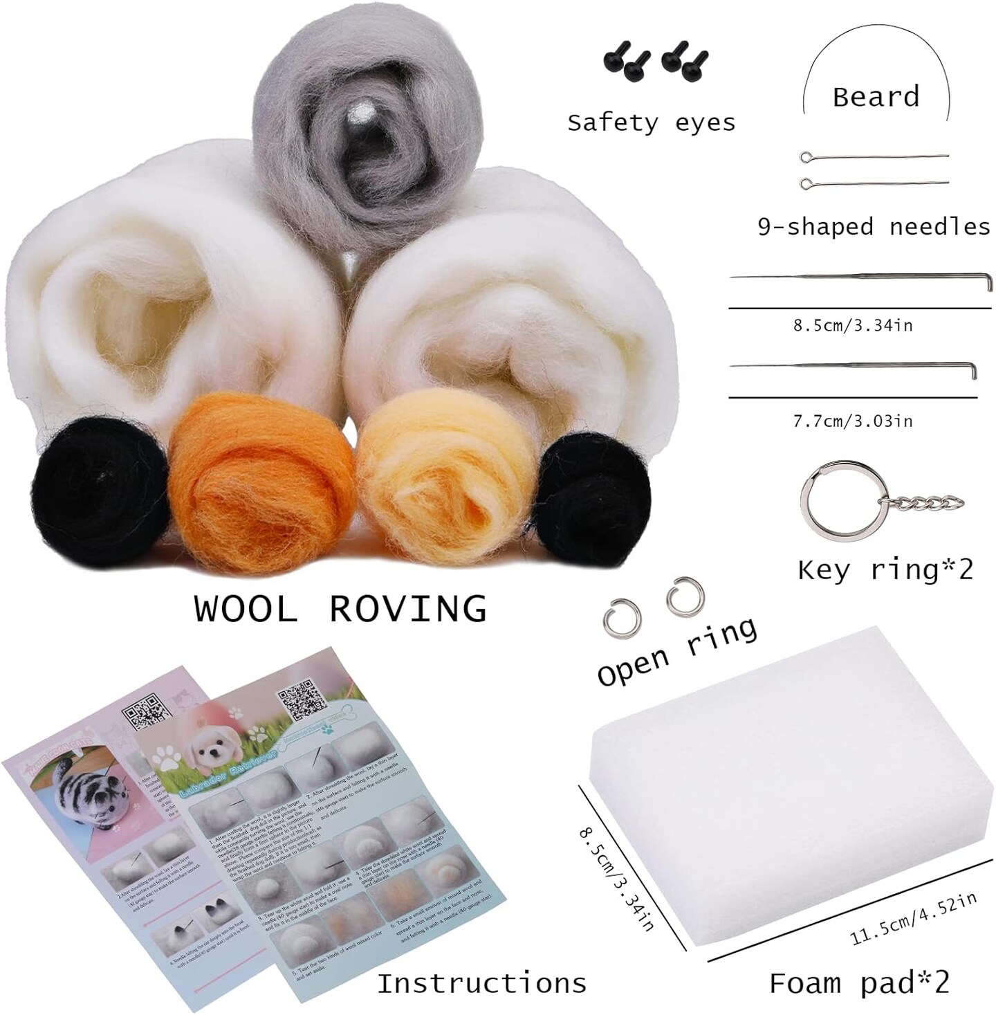 Needle Felting Kit, 2 PCS Animals Needle Felting Set with Instructions, Needle Felting Pad, Felting Wool, Felting Needles, Keychain and Split Ring