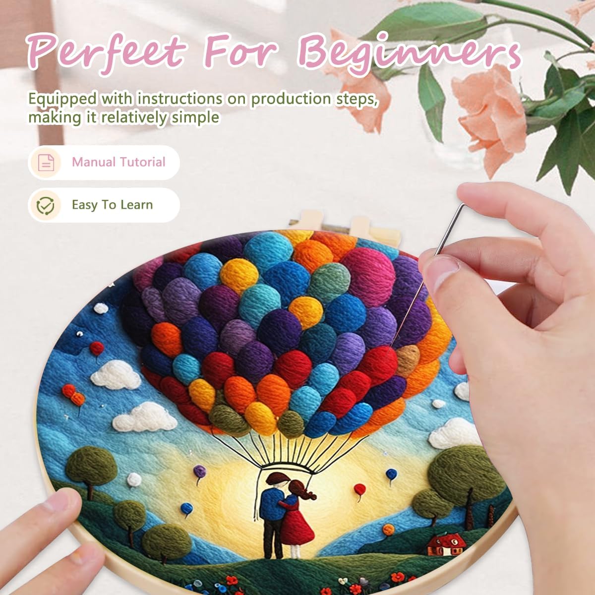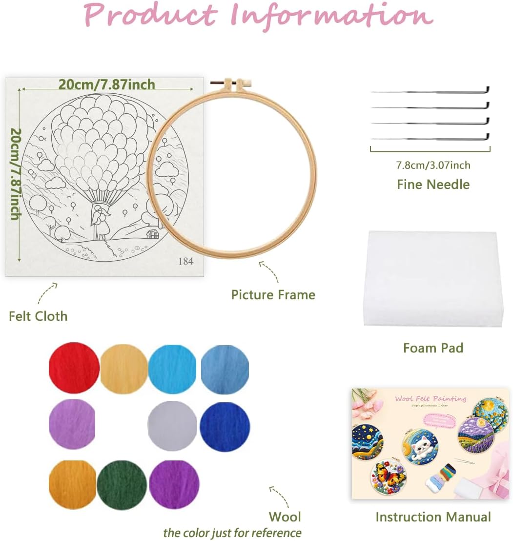 Needle Felting Kit Beginner, Easy Needle Felting Wool with Picture Frame, Foam Pad, Instructions, and Felt Cloth, Great Gift Decoration