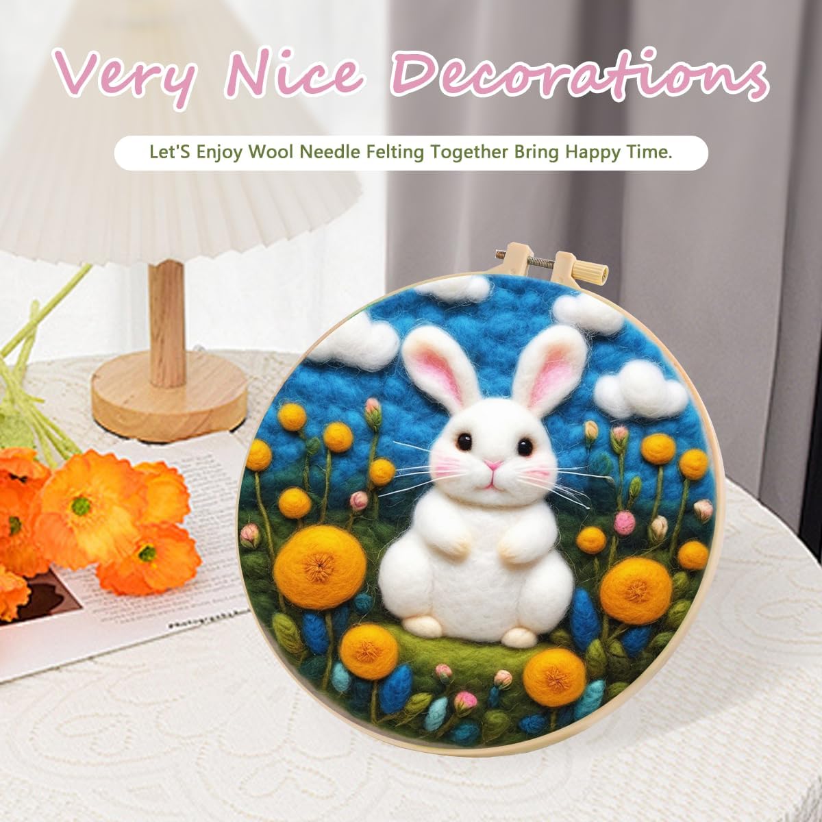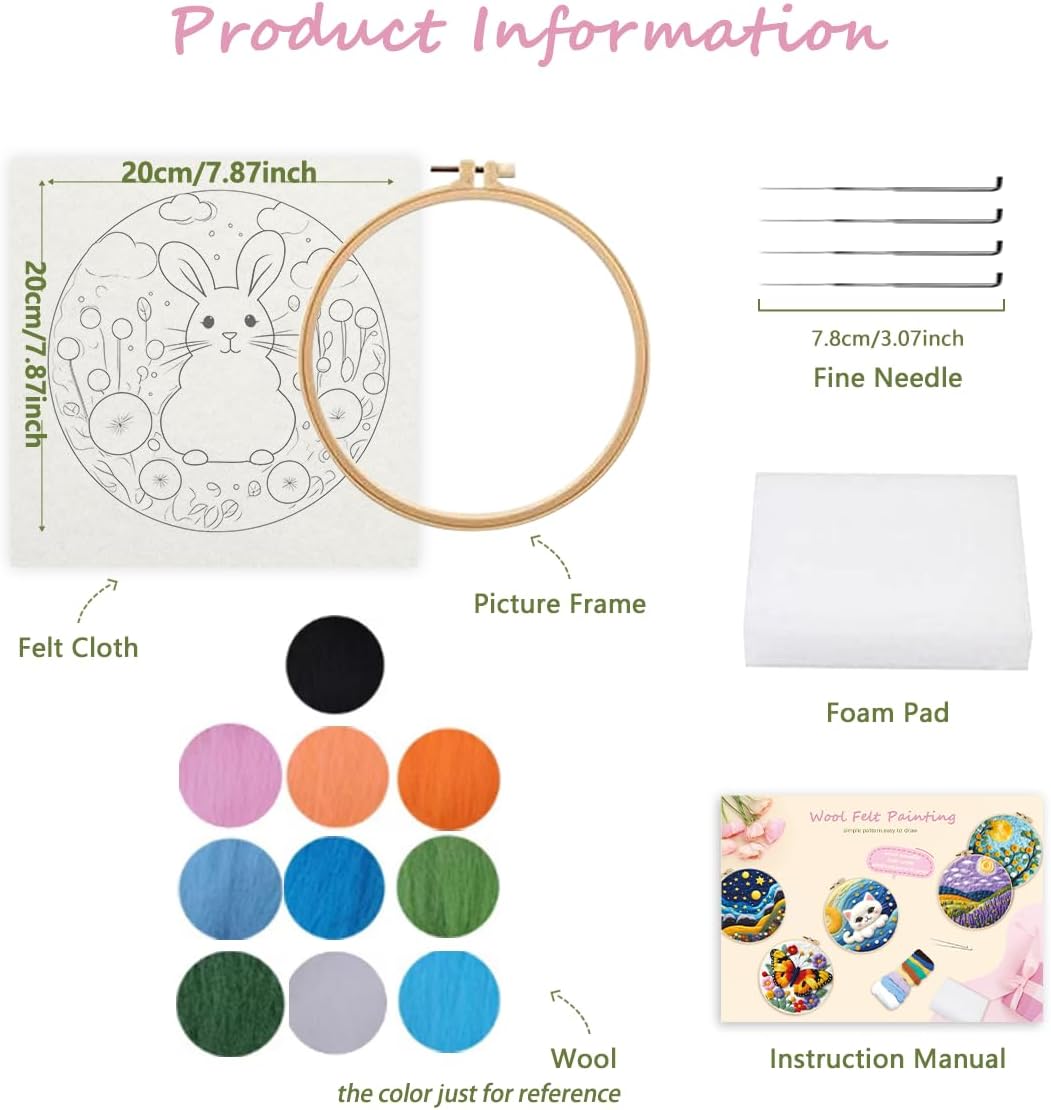 Needle Felting Kit, Easy Needle Felting Wool for Beginner with Picture Frame, Foam Pad, Instructions, and Felt Cloth, Great Gift Decoration