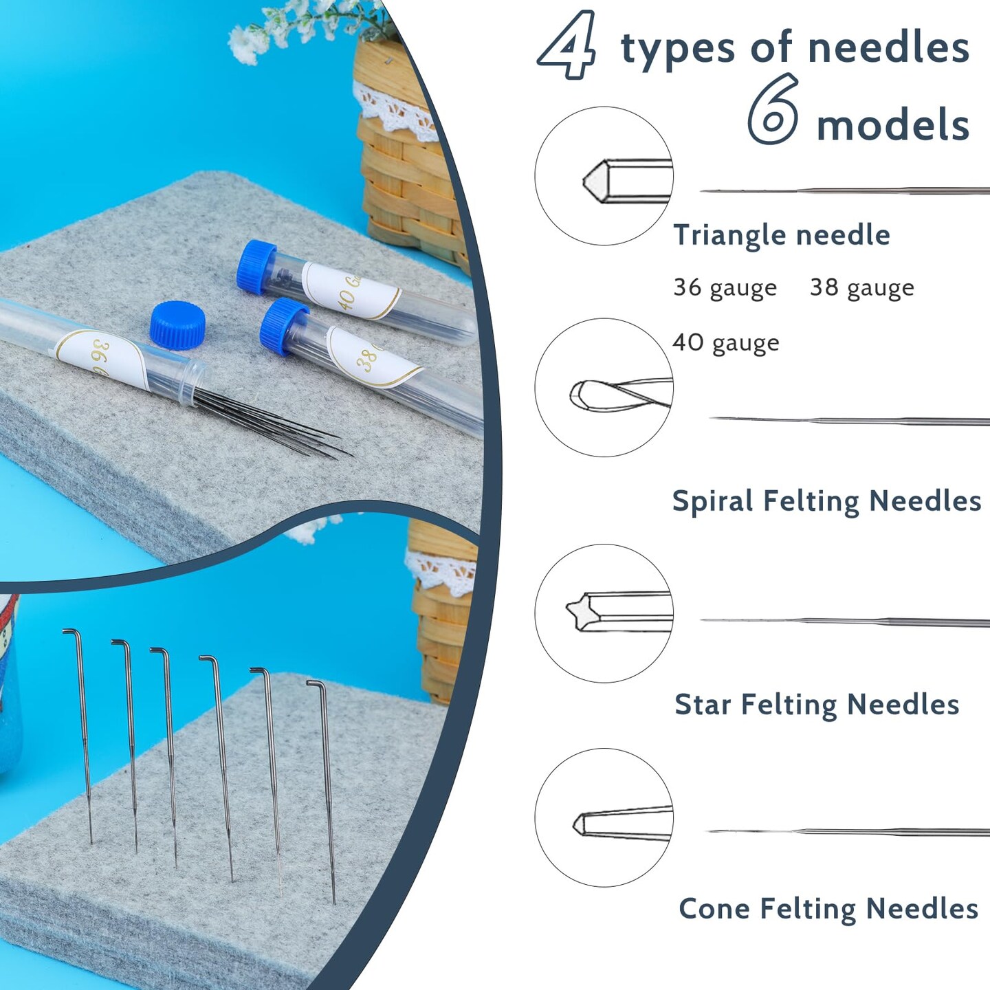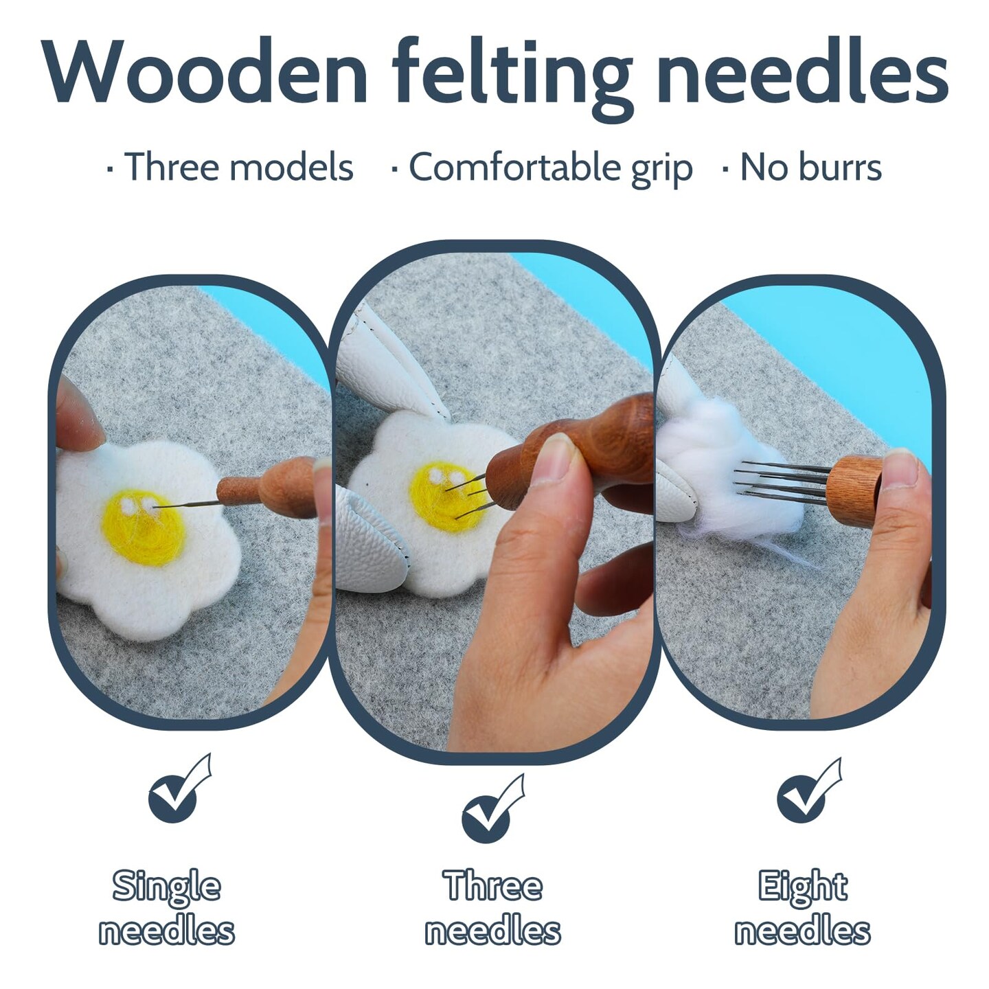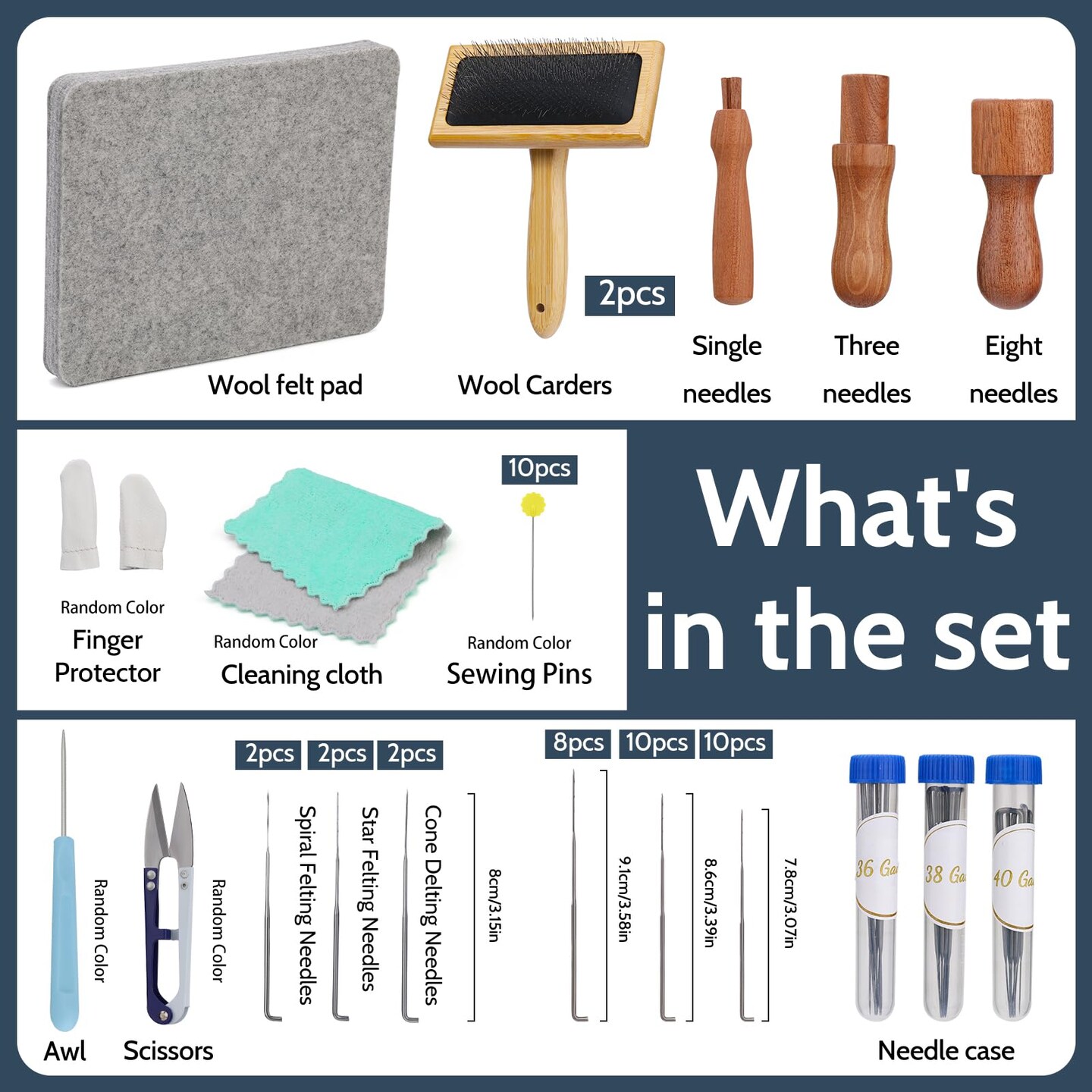 Needle Felting Kit Tools, 10"x 8" Felting Pad,Wooden Wool Carders, 34 Pcs Felting Needles, Felt Kit Supplies Include Storage Bag for Beginners DIY Wool Craft