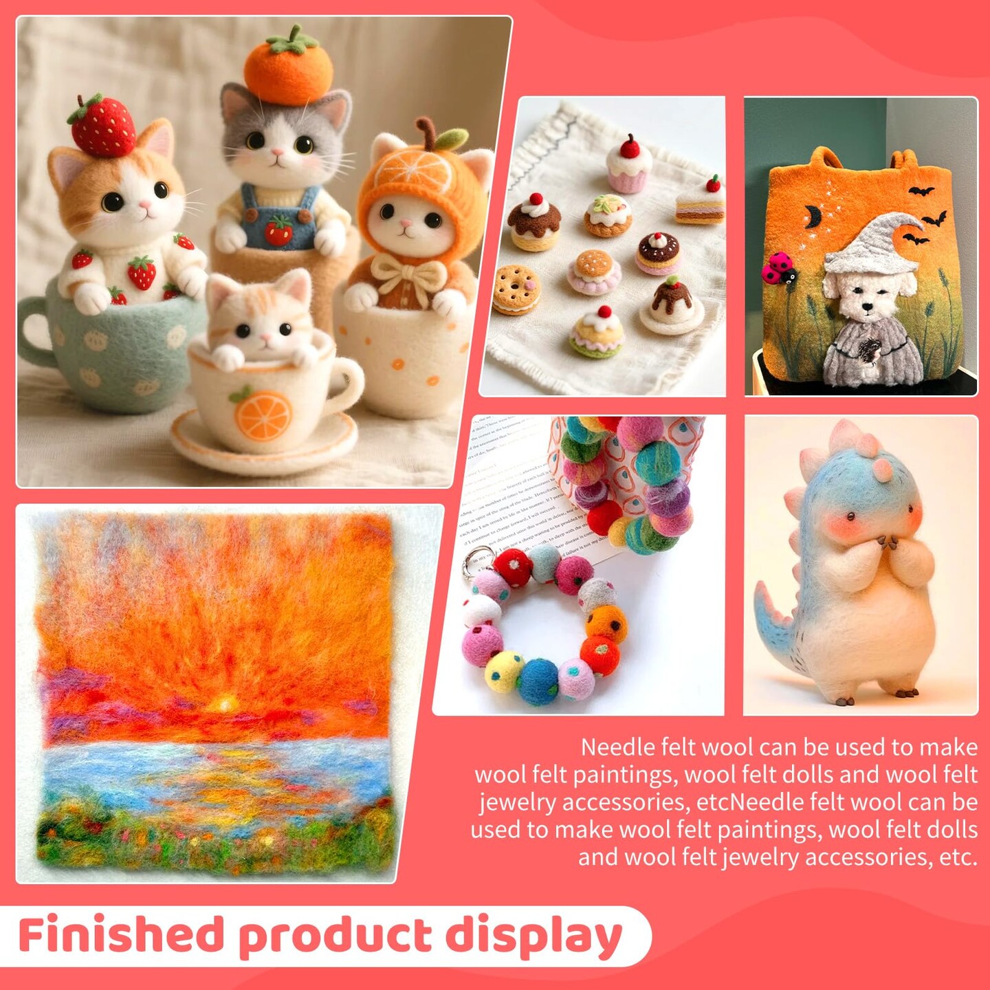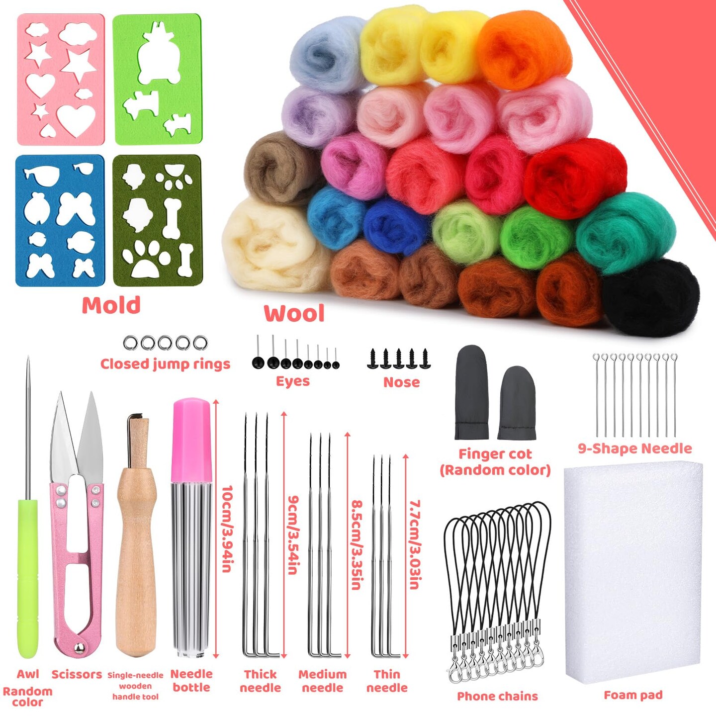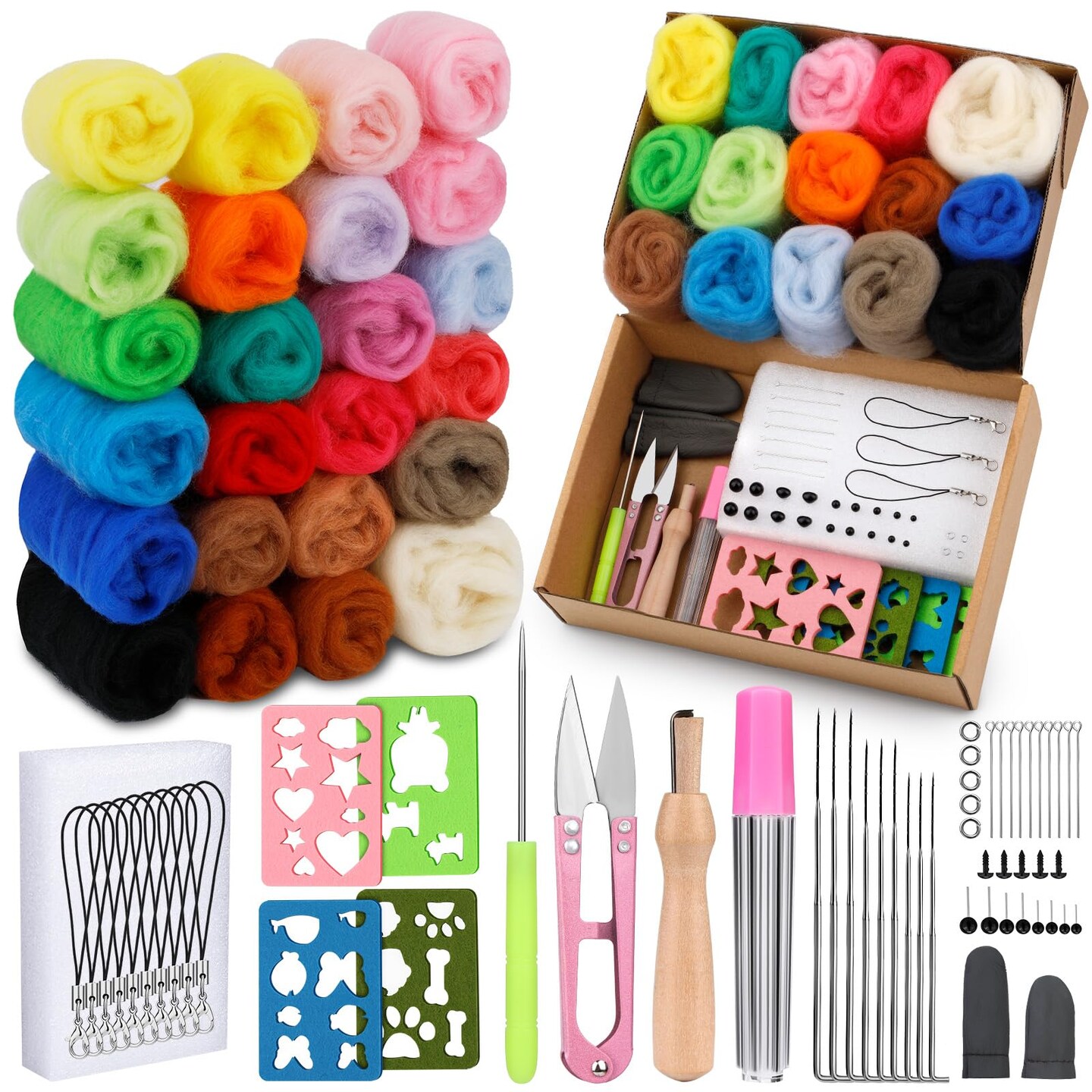 Needle Felting Kit, Wool Roving 24 Colors Set, Needle Wool Felting Tools Kit for Beginners, Needle Felting Starter Kits with Felting Needles for Felted Animal Needle Felting Supplies