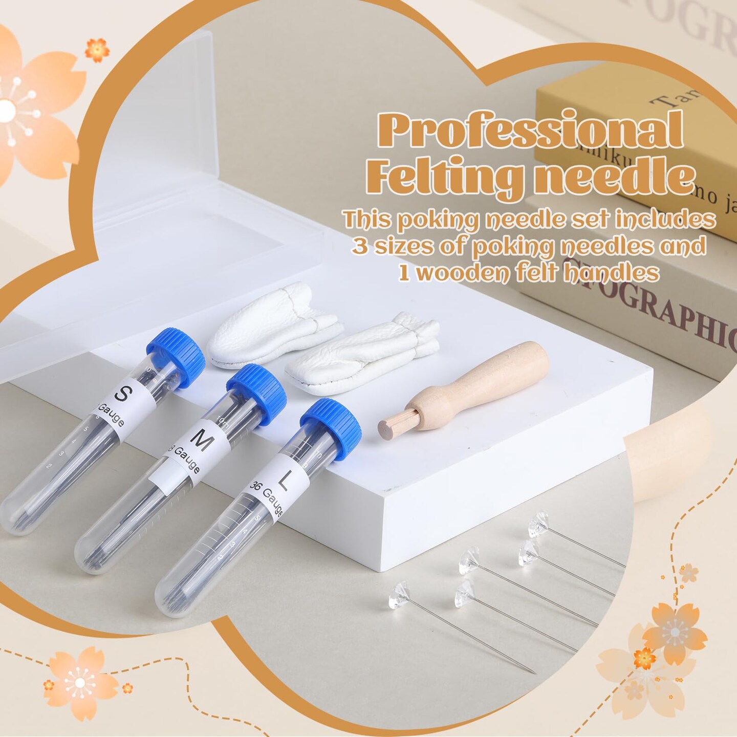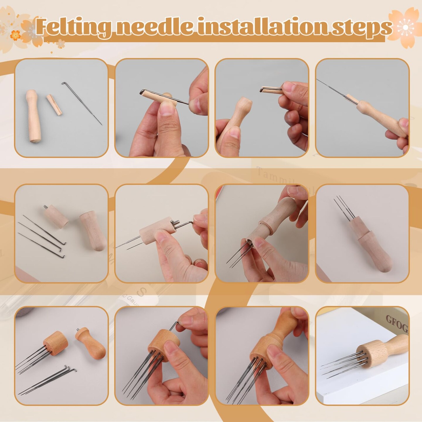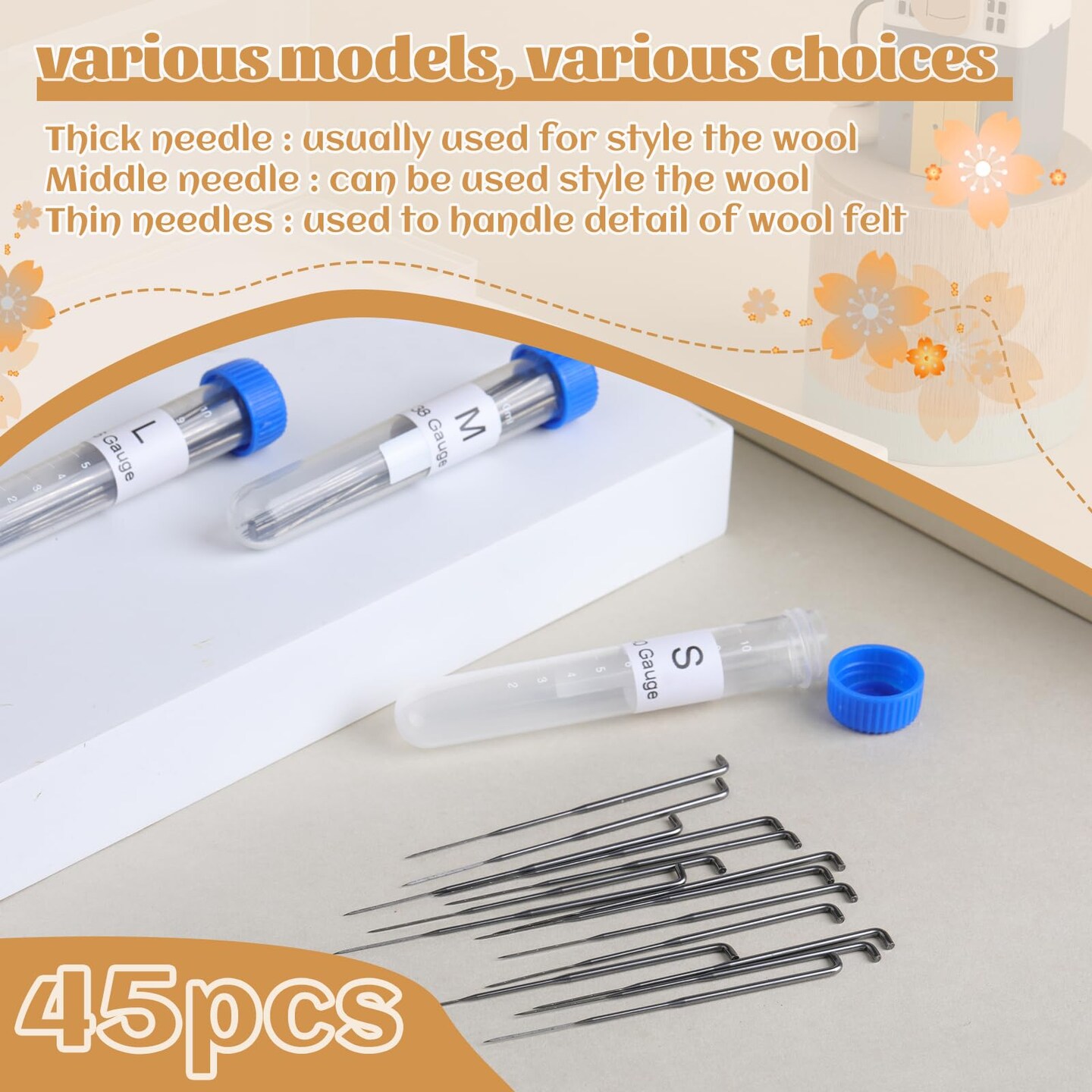 Needle Felting Needles,57PCS Needle Felting Kits,Needle Felting Supplies,45 Wool Felting Needles, 3 Wooden Handle for Making Felt Animals Doll Painting Handicraft 36/38/40 Gauge