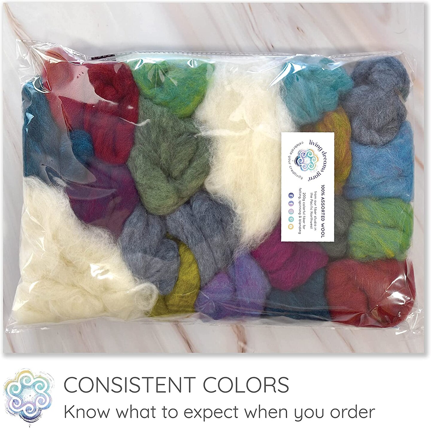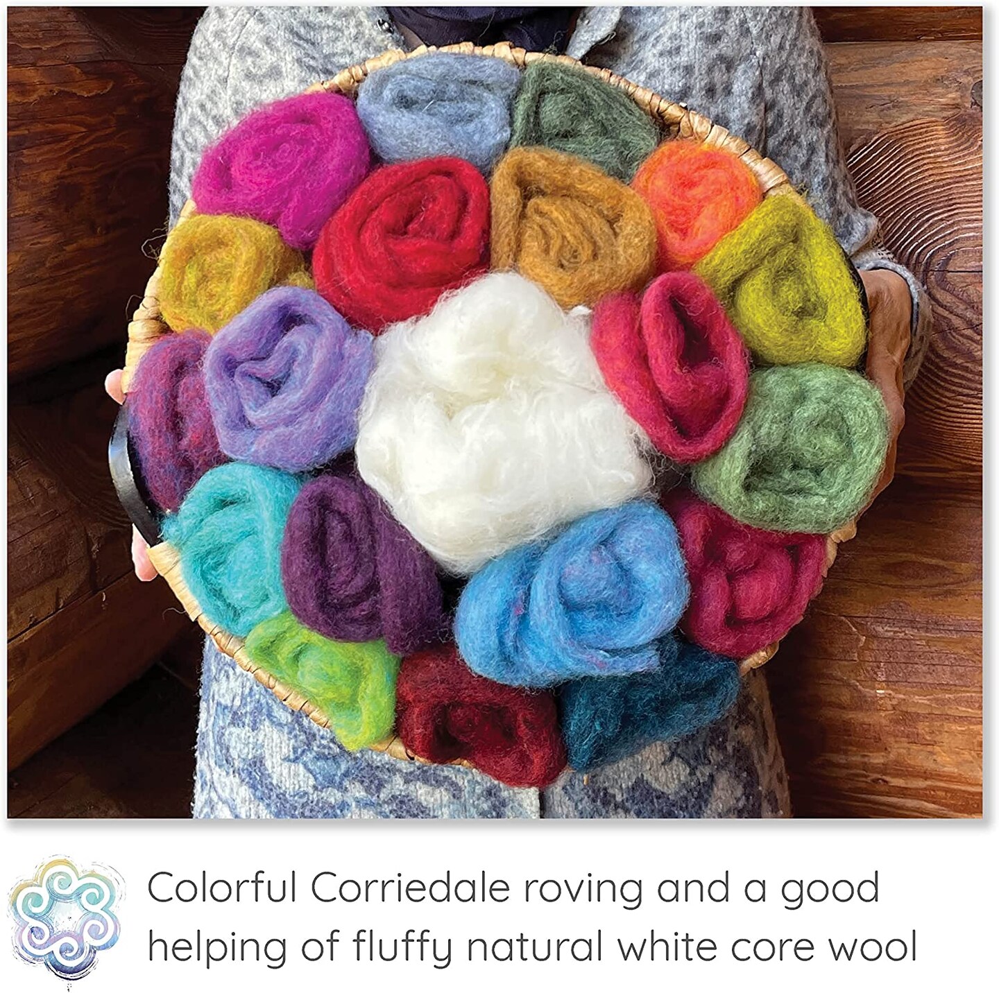 Needle Felting Wool, Large Size. Assorted Colors & White Core Wool. Premium Carded Wool for Felting, Spinning, Blending, Craft. Assorted Roving Variety Pack