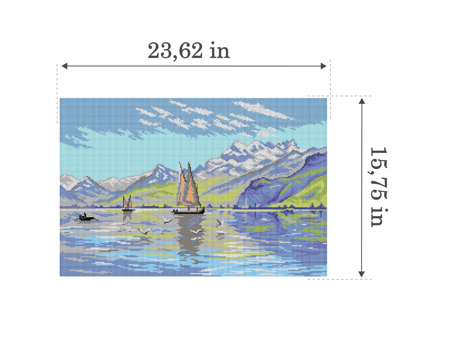 Needlepoint canvas for halfstitch without yarn after Peder Mork Monsted - View of Lake, Vevey 3587Q