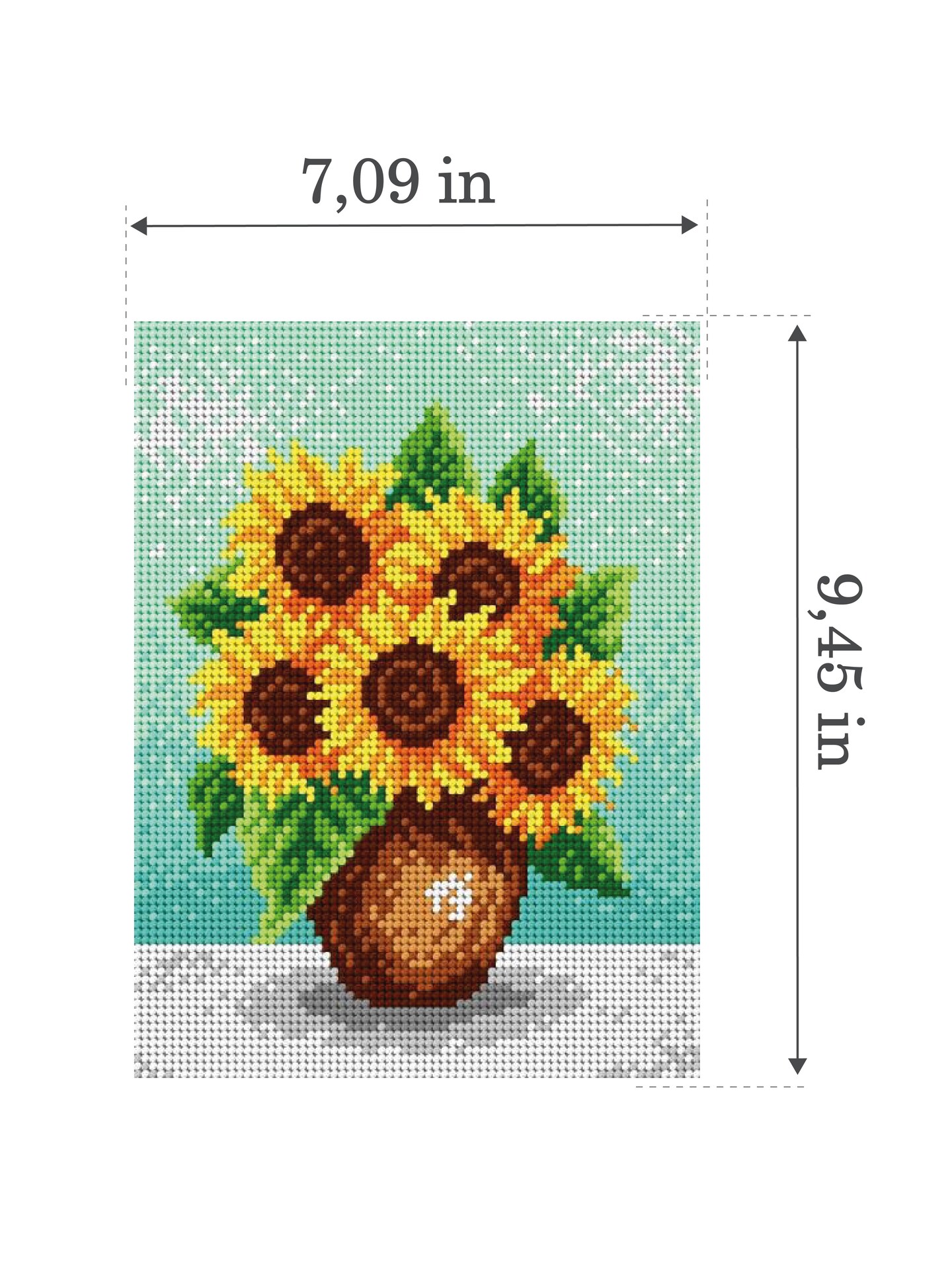 Needlepoint canvas for halfstitch without yarn Sunflowers in a Brown Vase 1940F - Printed Tapestry Canvas