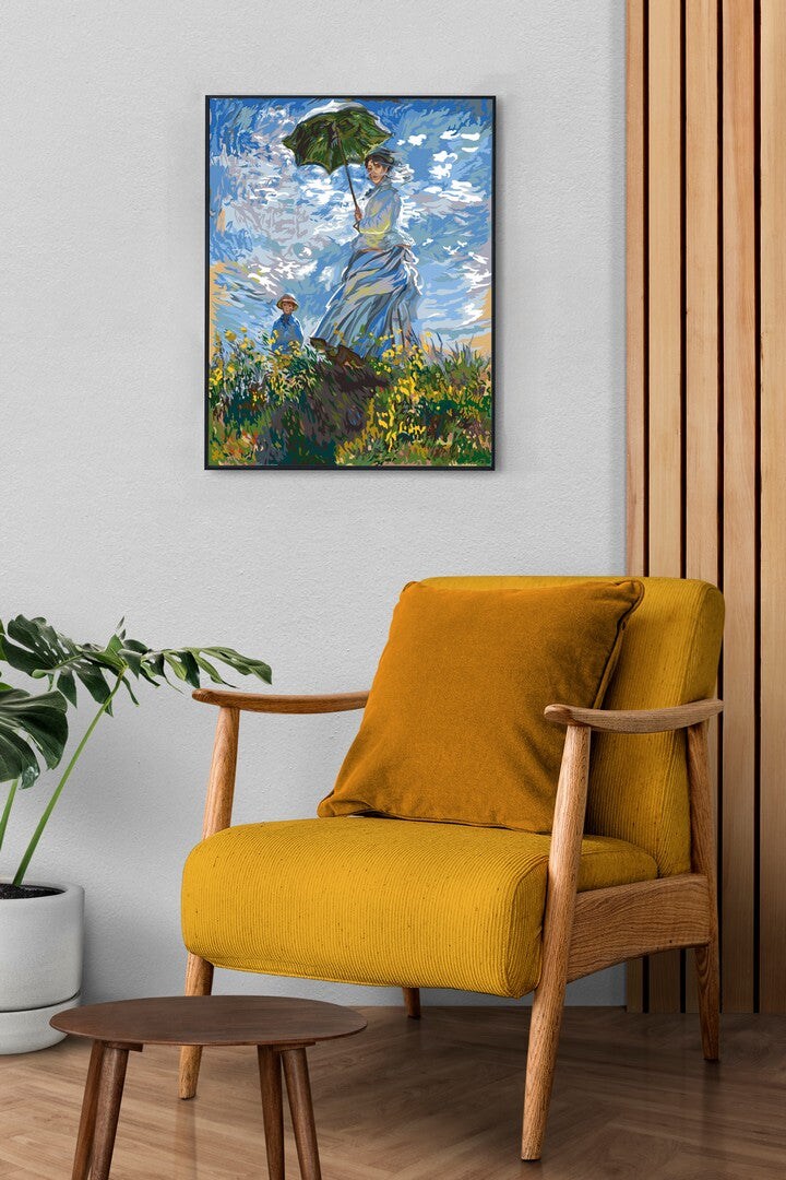 Needlepoint canvas for halfstitch without yarn The Woman With A Parasol By Monnet MRC15243 Margot de Paris Printed Tapestry Canvas